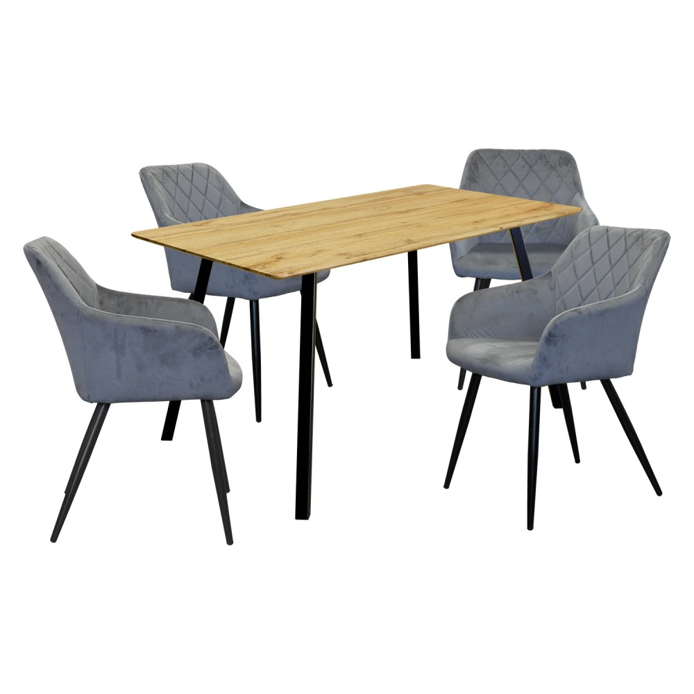 jídelní stůl BERGEN 4090 a 4 jídelní židle DIAMANT 4095 stůl kovová konstrukce, barevné provedení černá deska MDF, barevné provedení dub Wotan židle sametový potah, barevné provedení šedá kovová konstrukce, barevné provedení černá, výška sedu 51 cm rozměr stolu (š/h/v): 140 × 80 × 75 cm, rozměr židle (š/h/v): 55 × 59 × 83 cm