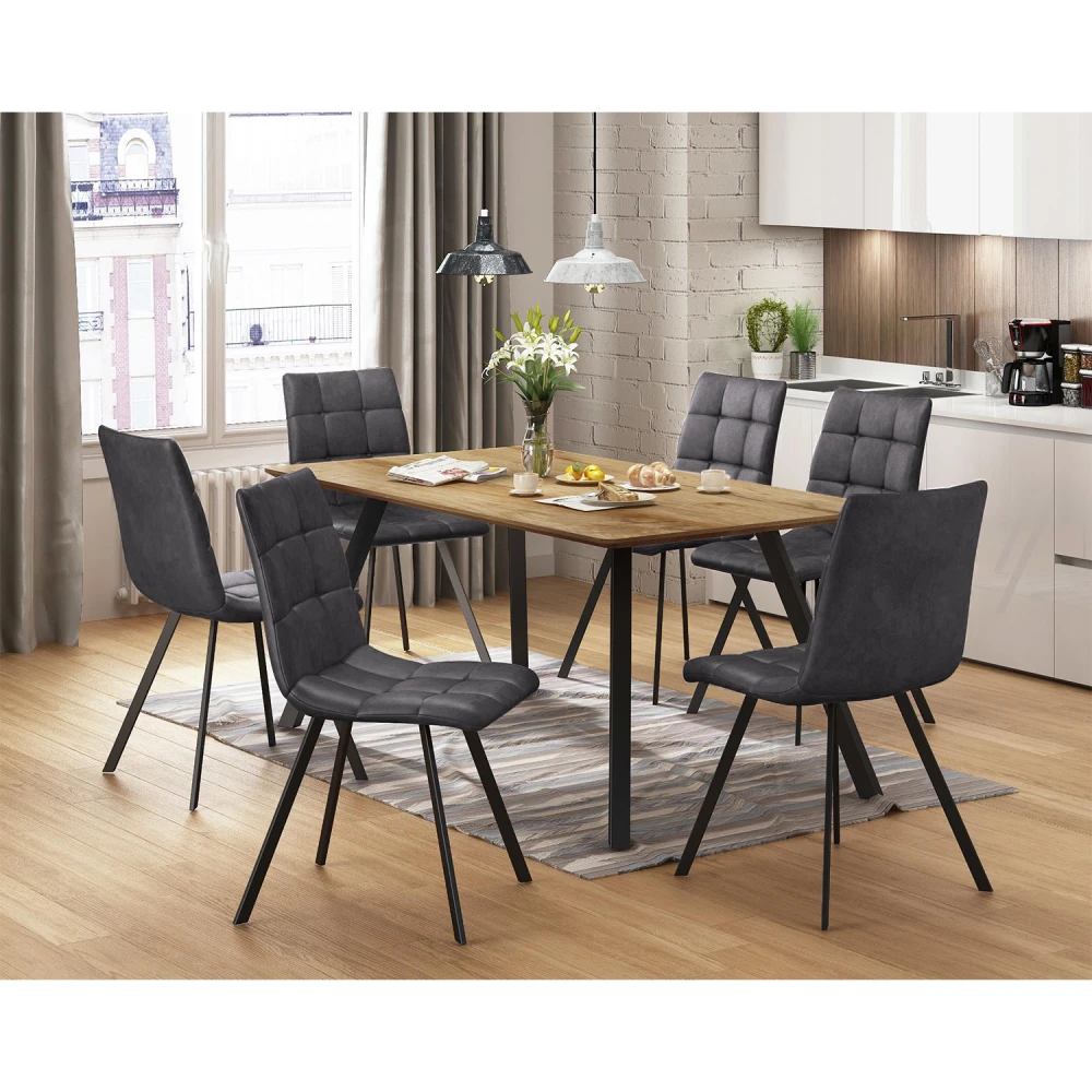 jídelní stůl BERGEN 4090 a 6 jídelních židlí BERGEN 4094 stůl kovová konstrukce, barevné provedení černá deska MDF, barevné provedení dub Wotan židle potah broušená kůže – imitace mikrovlákno, barevné provedení antracitová kovová konstrukce, barevné provedení černá, výška sedu 51 cm rozměr stolu (š/h/v) 140 × 80 × 75 cm, rozměr židle (š/h/v) 55 × 45 × 88 cm