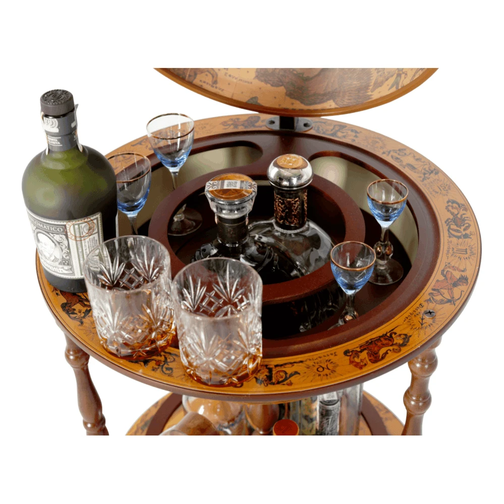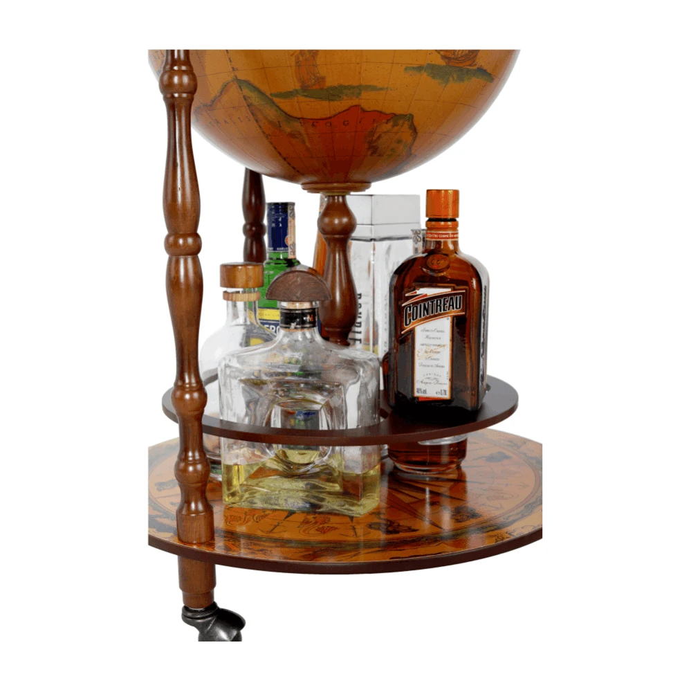 Servírovací stolek GLOBUS 2-324 s kolečky a otočnou vrchní částí. Barevné provedení třešeň. Materiál dřevo / MDF / plast.