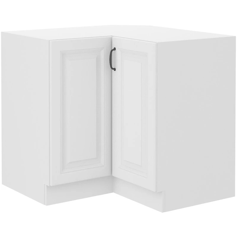 Spodní rohová kuchyňská skříňka je vyrobena z lamina tloušťky 16 mm bílé barvy. Skříňka je vyrobena z kvalitních MDF desek a uvnitř najdete jednu polici. Dveře mají černý kovový úchyt (délka 124mm) a jsou vybavena systémem tichého zavírání. Poskládejte si z naší bohaté nabídky skříněk moderní a designovou kuchyň podle Vašich představ. Skříňka je dodávaná v demontu. Součástí je montážní plánek včetně všech potřebných spojovacích materiálů.