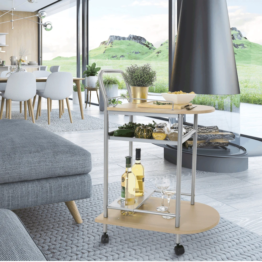 Servírovací stolek, buk/stříbrný, LIMA