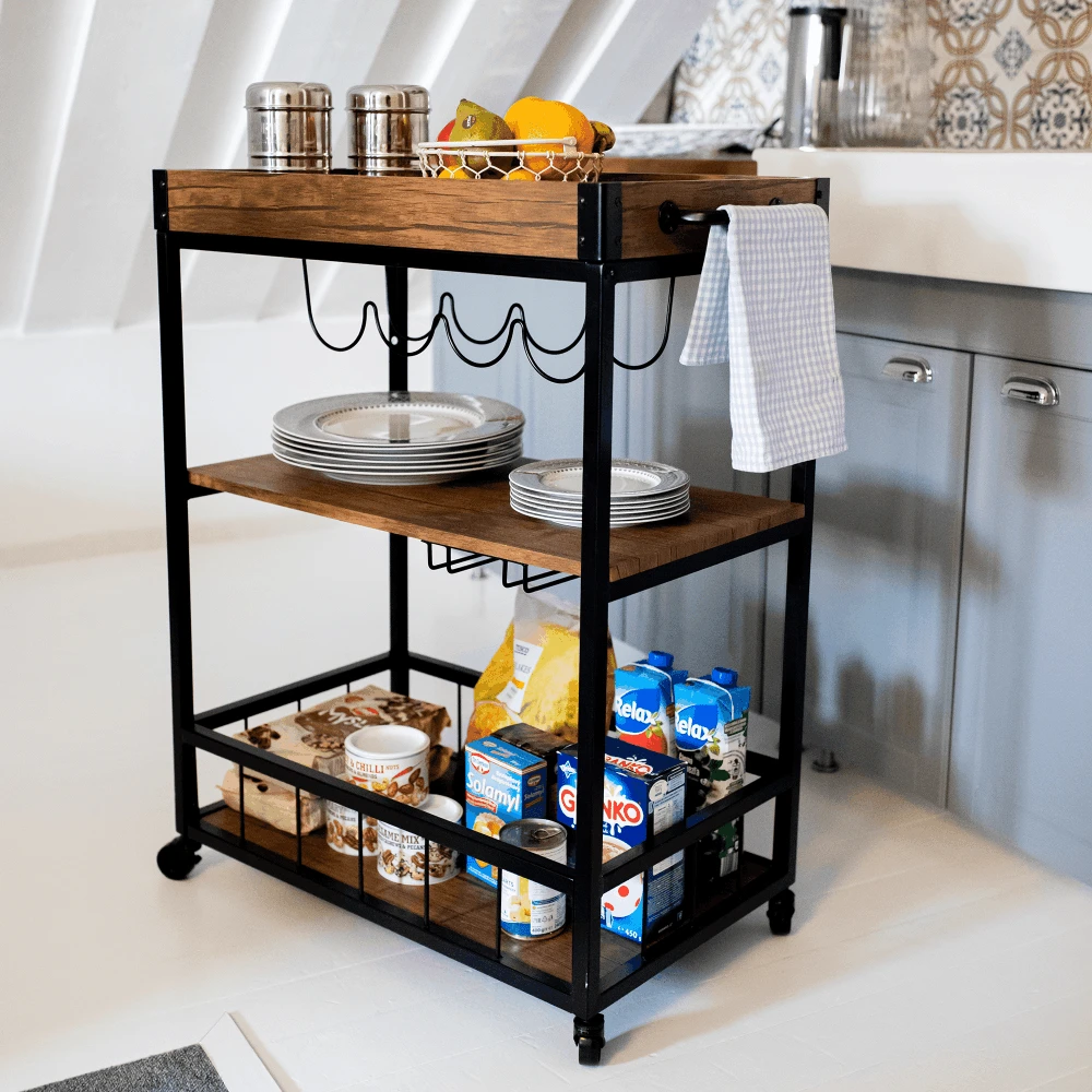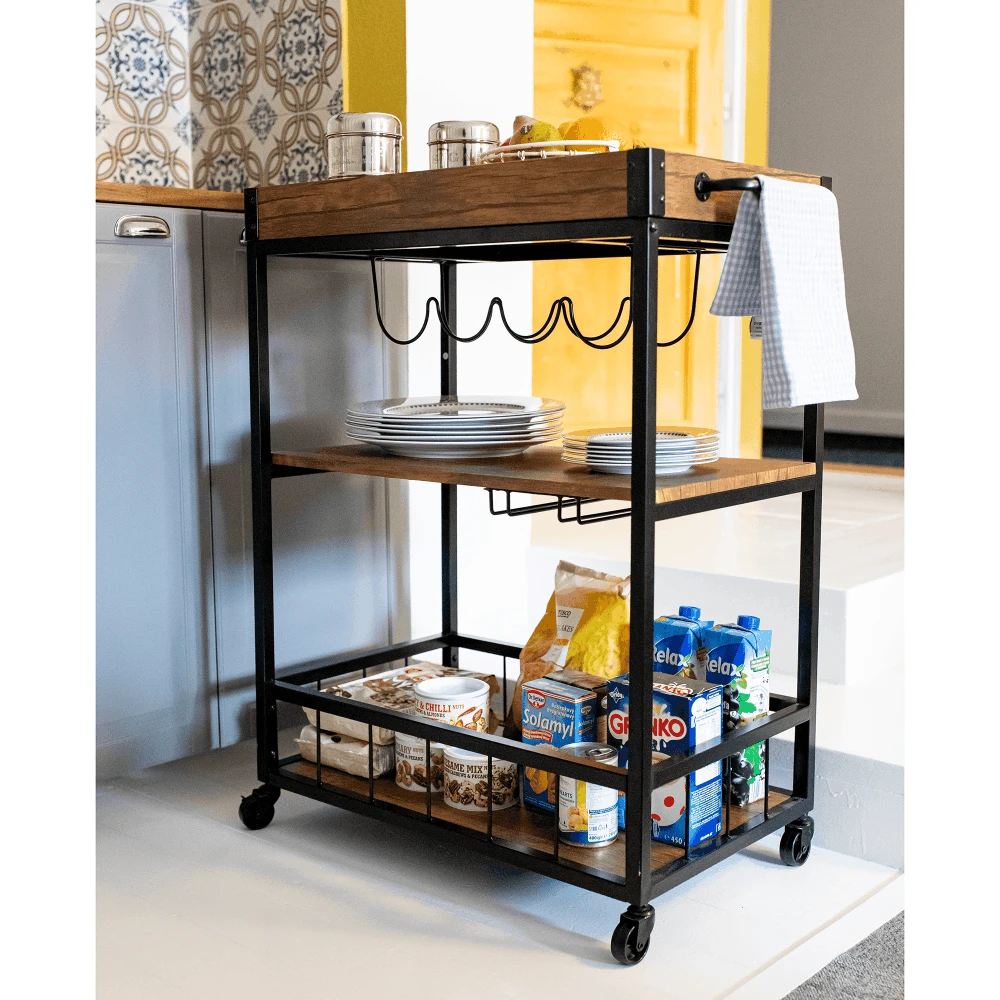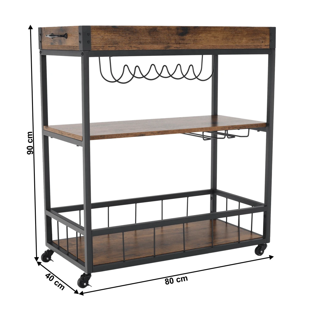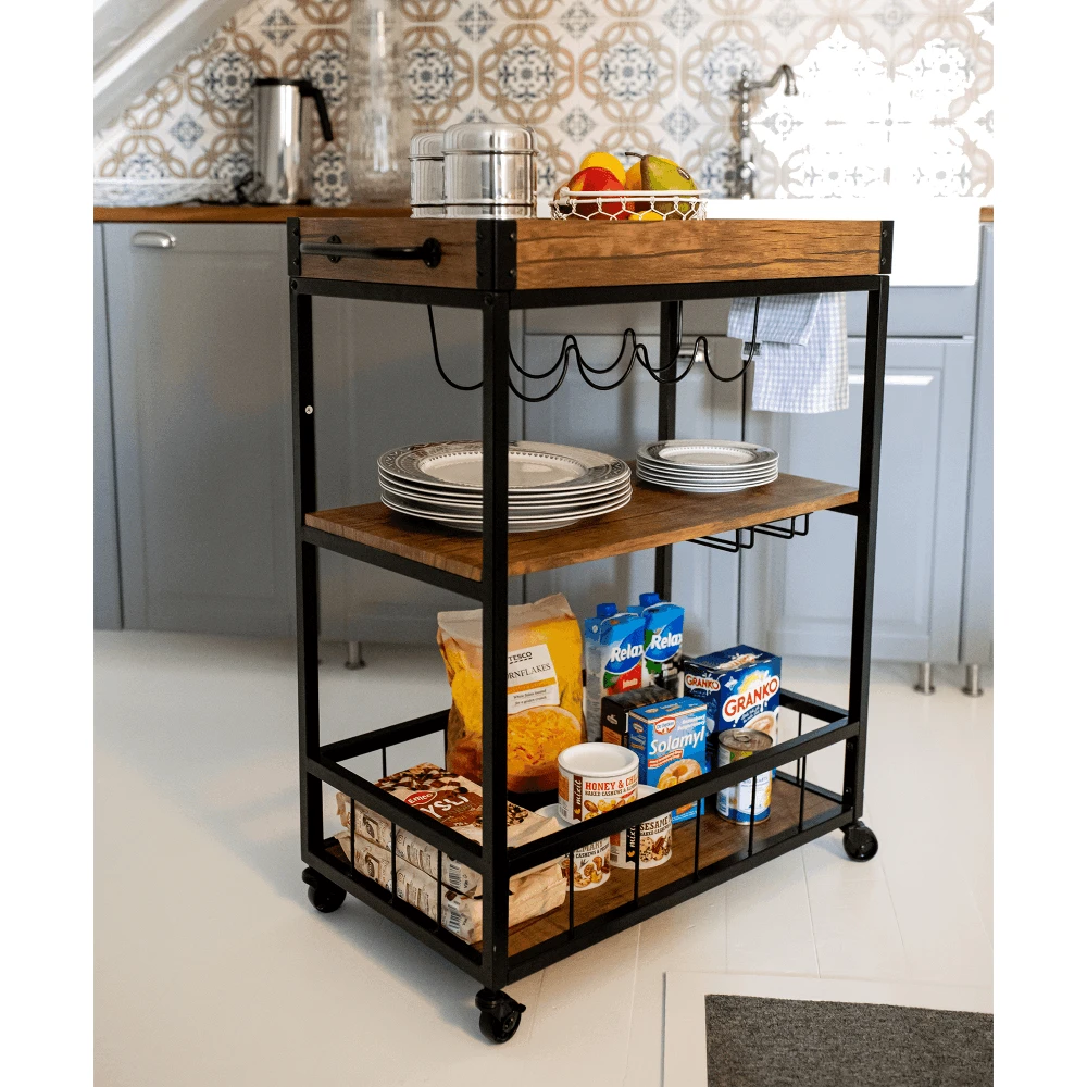 Servírovací vozík, dub smoke / černá, SILVIUS