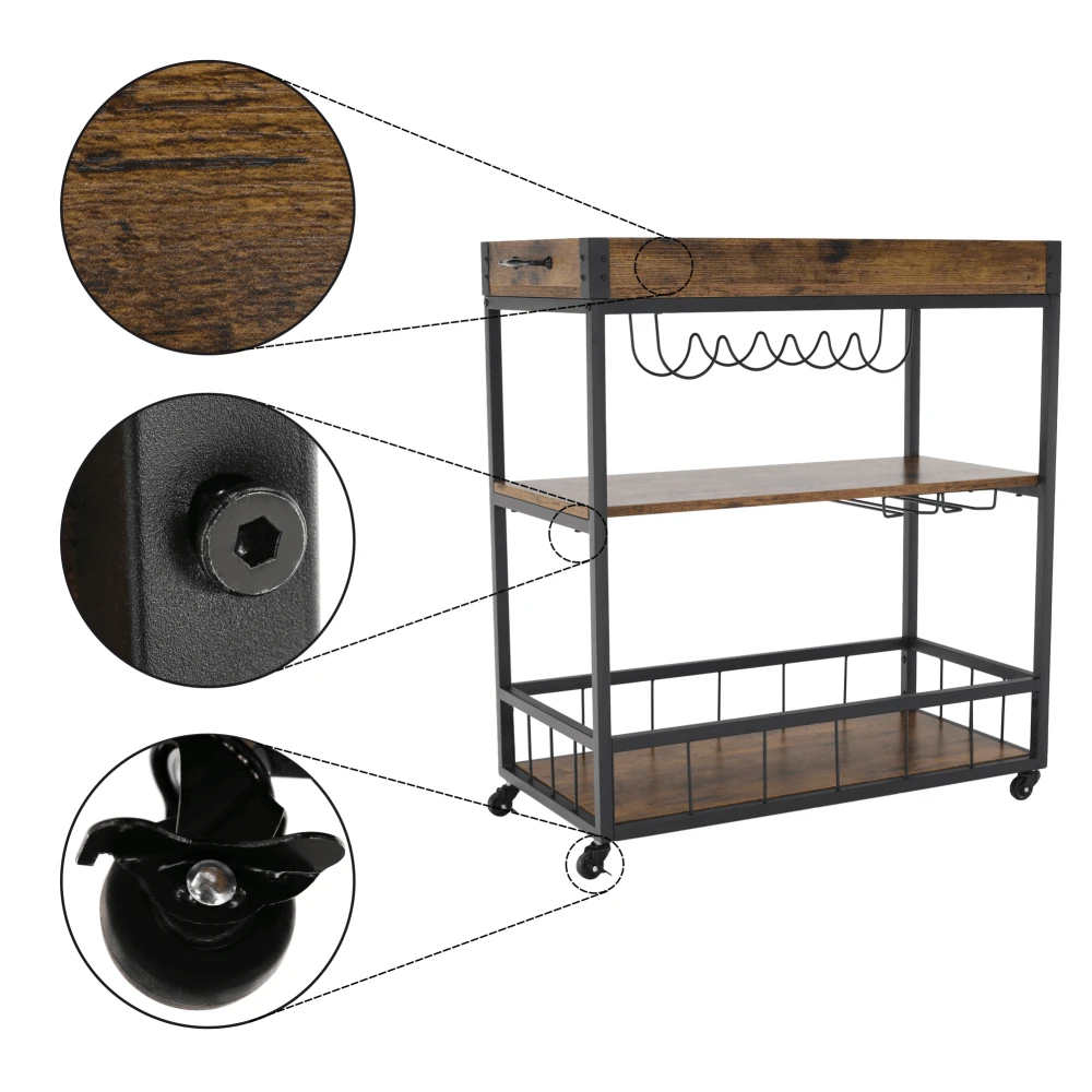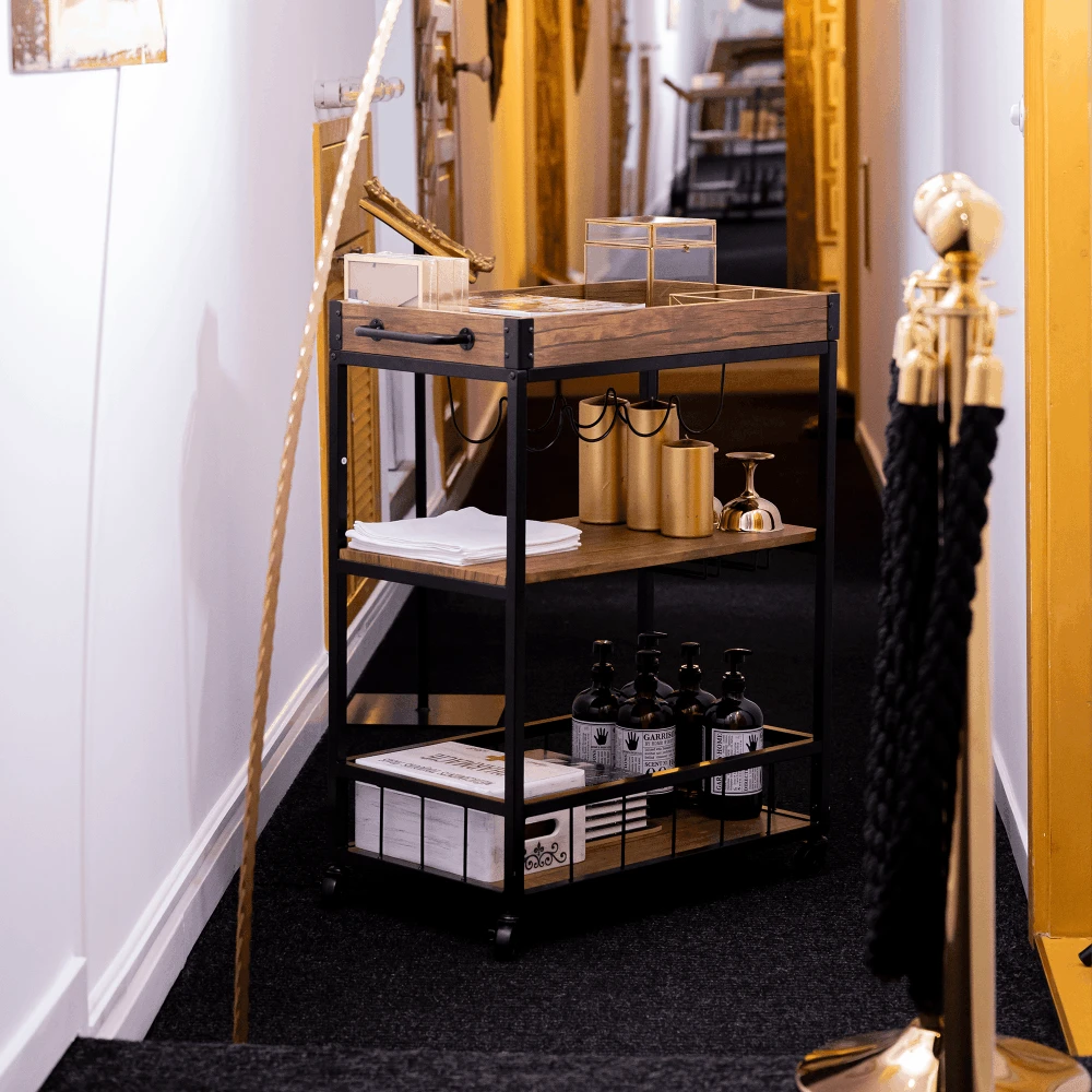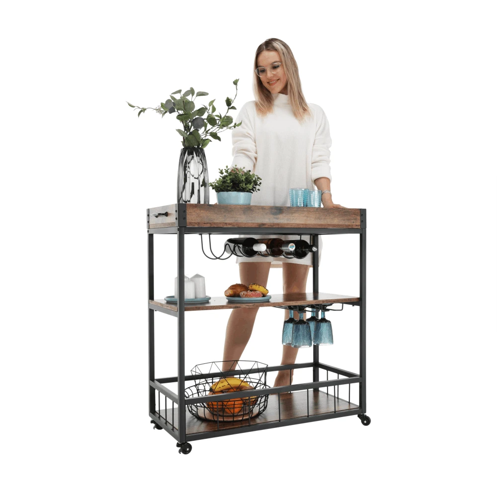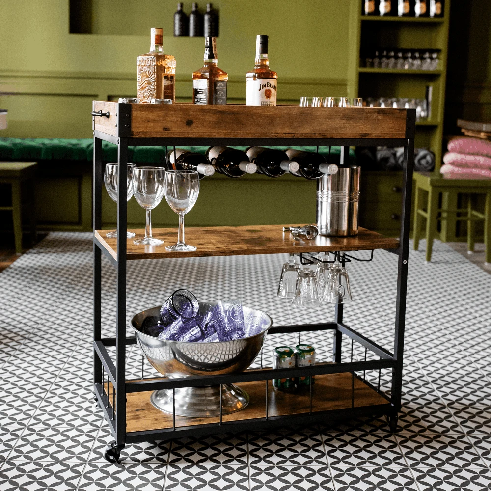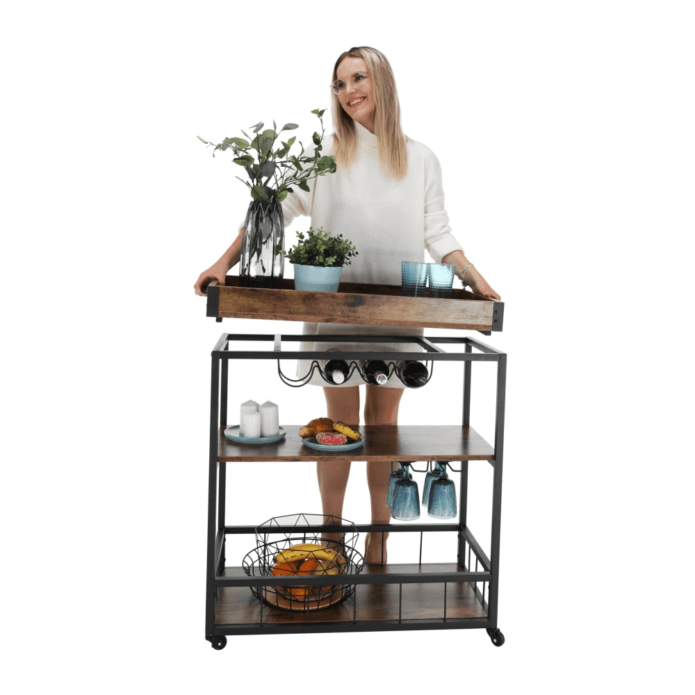 Servírovací vozík, dub smoke / černá, SILVIUS