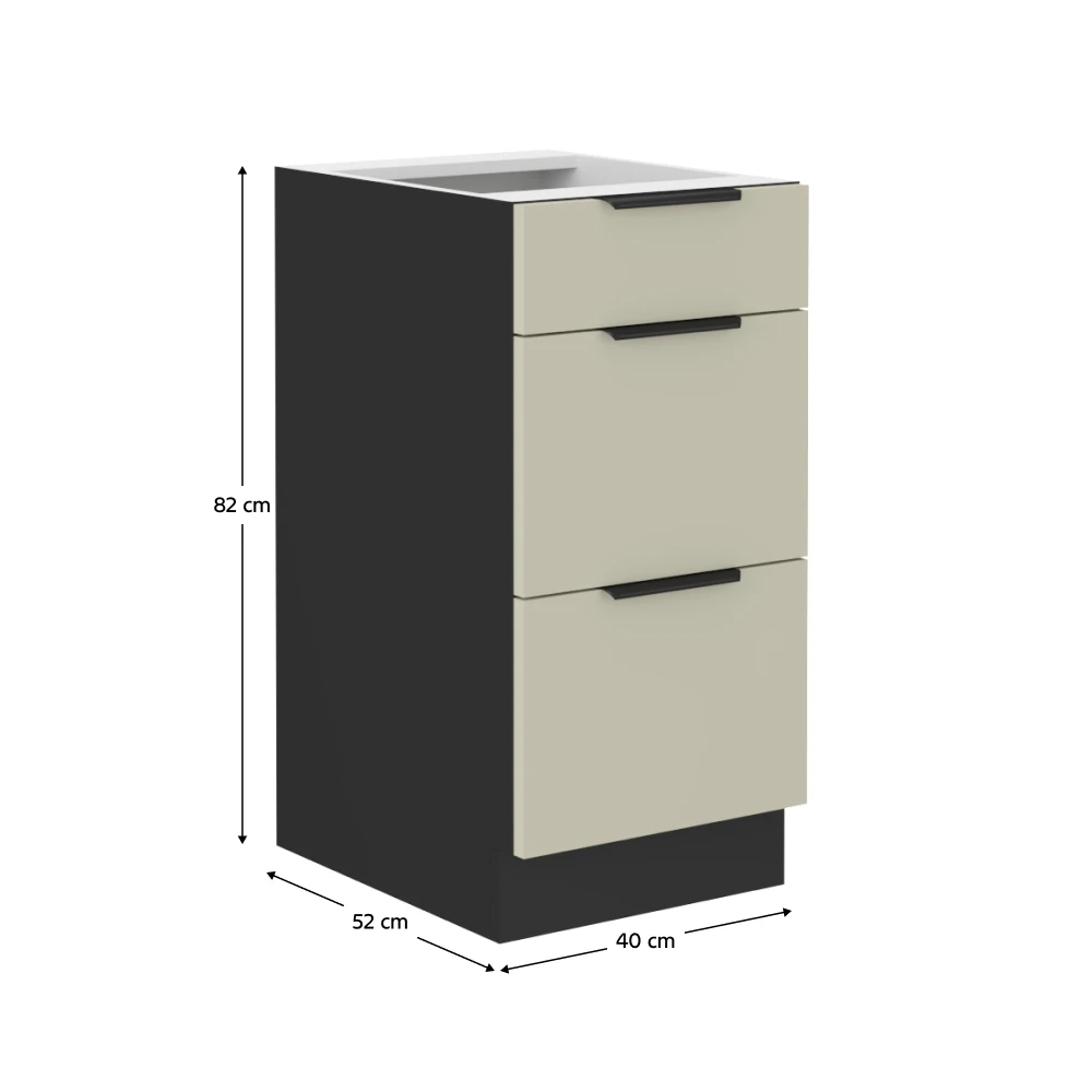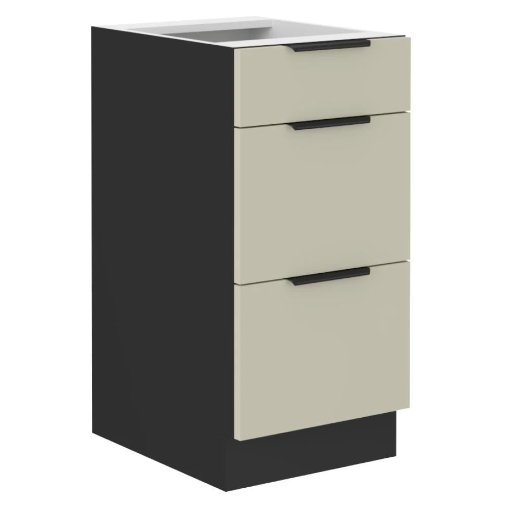 Spodní sektorové skříňky jsou dodávány včetně dolní lišty (sokla), bez pracovní desky. Pracovní desku o tloušťce 3,8 cm si můžete doobjednat v provedení marmur roma za cenu 1.650 Kč/bm.
