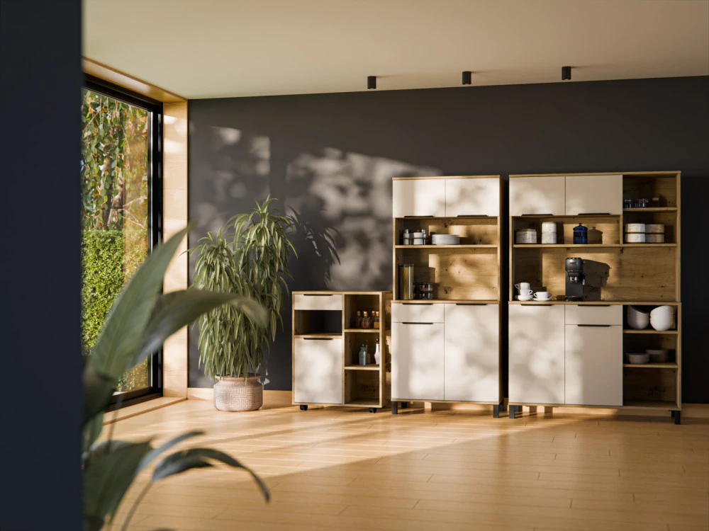 Nadčasová kolekce Selva Bufet navazuje na linii kuchyňských skříněk Selva. Dvířka v dekoru kašmír v kombinaci s přírodními detaily přinášejí do interiéru lehkost a svěžest. Jednotný design a precizně zpracované detaily podtrhují moderní charakter celé kolekce a dodávají prostoru osobitý styl. Z bohaté nabídky prvků si můžete sestavit kuchyň přesně podle vašich představ a prostorových možností.