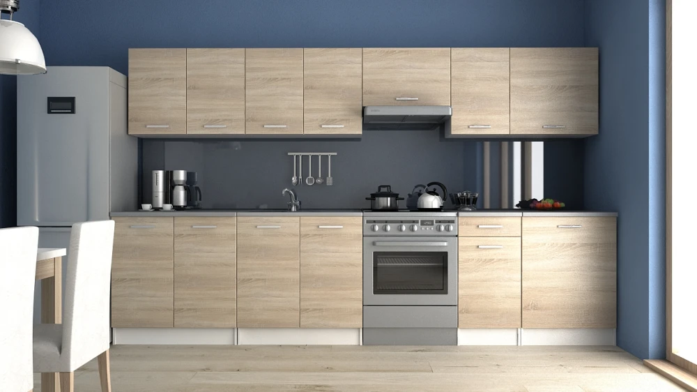 Kuchyňská linka Luigi je ideální volbou pro Vaši kuchyň. Je moderní a zároveň i praktická. Skříňky nabízejí dostatek úložného prostoru. Je vyrobená z lamina, které je odolné a snadné na údržbu. Díky svým rozměrům je vhodná i do malých kuchyní. Skříňky si můžete sestavit libovolně. Kuchyňská linka je dodávaná v demontu. Součástí balení je montážní plánek včetně všech potřebných spojovacích materiálů. Cena je uvedena za sestavu vyobrazenou na úvodní fotografii BEZ PRACOVNÍ DESKY. Kuchyň nabízíme v několika rozměrech i dekorech.Vyobrazené spotřebiče, dřez a dekorace nejsou v ceně.