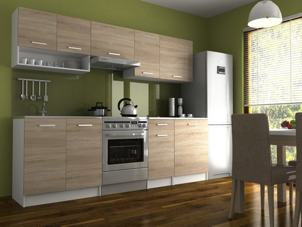 Kuchyňská linka Luigi je ideální volbou pro Vaši kuchyň. Je moderní a zároveň i praktická. Skříňky nabízejí dostatek úložného prostoru. Je vyrobená z lamina, které je odolné a snadné na údržbu. Díky svým rozměrům je vhodná i do malých kuchyní. Skříňky si můžete sestavit libovolně. Kuchyňská linka je dodávaná v demontu. Součástí balení je montážní plánek včetně všech potřebných spojovacích materiálů. Cena je uvedna za sestavu vyobrazenou na úvodní fotografii BEZ PRACOVNÍ DESKY. Kuchyň nabízíme v několika rozměrech i dekorech.Vyobrazené spotřebiče, dřez a dekorace nejsou v ceně.
