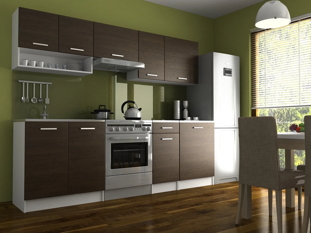 Kuchyňská linka Luigi je ideální volbou pro Vaši kuchyň. Je moderní a zároveň i praktická. Skříňky nabízejí dostatek úložného prostoru. Je vyrobená z lamina, které je odolné a snadné na údržbu. Díky svým rozměrům je vhodná i do malých kuchyní. Skříňky si můžete sestavit libovolně. Kuchyňská linka je dodávaná v demontu. Součástí balení je montážní plánek včetně všech potřebných spojovacích materiálů. Cena je uvedna za sestavu vyobrazenou na úvodní fotografii BEZ PRACOVNÍ DESKY. Kuchyň nabízíme v několika rozměrech i dekorech.Vyobrazené spotřebiče, dřez a dekorace nejsou v ceně.