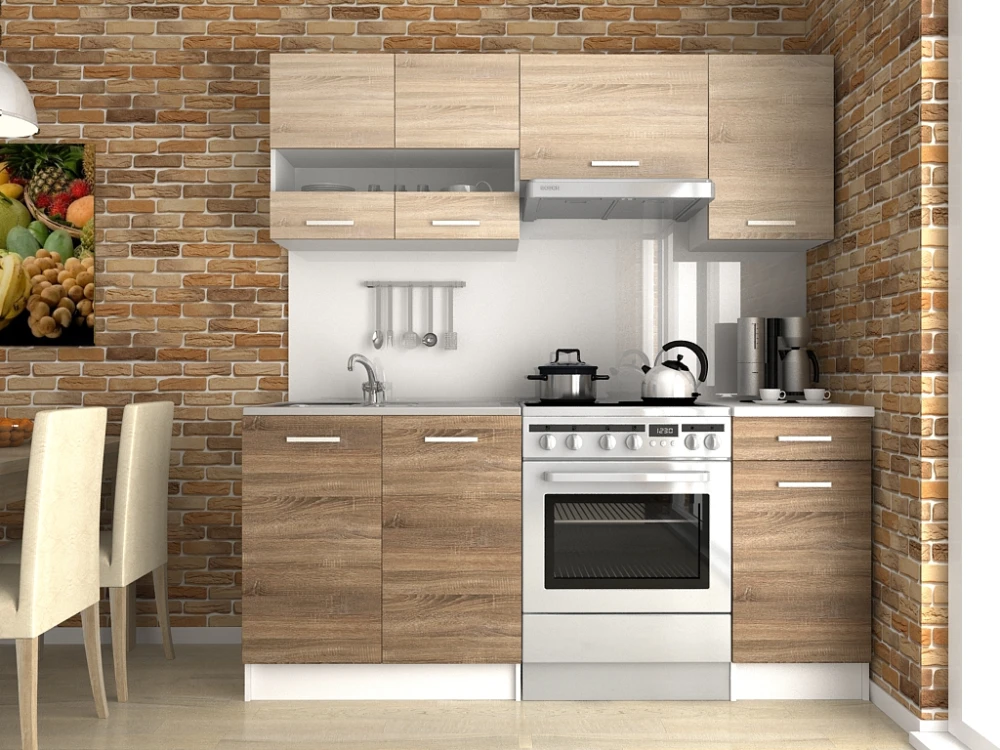 Kuchyňská linka Luigi je ideální volbou pro Vaši kuchyň. Je vyrobená z lamina, které je odolné a snadné na údržbu. Díky svým rozměrům je vhodná do garsonek a malometrážních kuchyní. Skříňky si můžete sestavit libovolně. Skříňky nabízejí dostatek úložného prostoru. Kuchyňská linka je dodávaná v demontu. Součástí balení je montážní plánek včetně všech potřebných spojovacích materiálů. Cena je uvedena za sestavu vyobrazenou na úvodní fotografii BEZ PRACOVNÍ DESKY. Vyobrazené spotřebiče, dřez a dekorace nejsou v ceně.