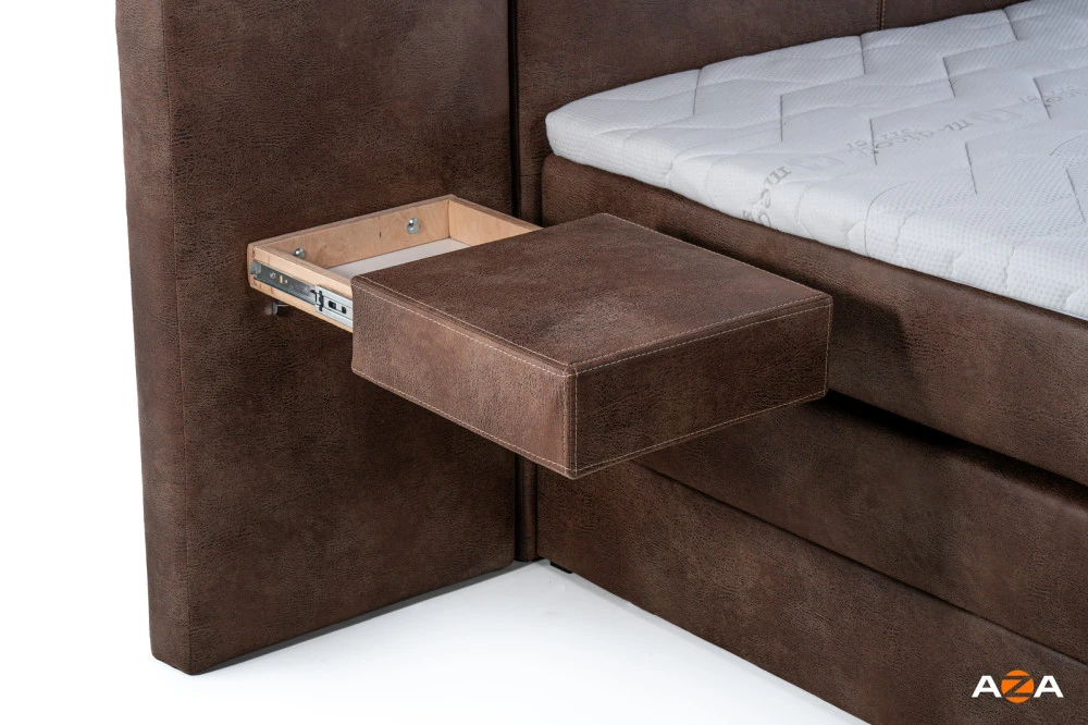 - Spodní box slouží jako velkorysý úložný prostor, ideální pro lůžkoviny, sezónní věci nebo ložní doplňky. Jeho součástí je i integrovaná bonellová matrace, která zajišťuje základní pružnost.