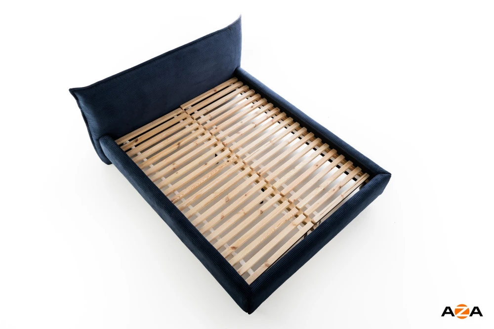 Postel je navržena bez úložného prostoru, což podtrhuje její minimalistický charakter. Nepůsobí robustně a pomáhá zachovat otevřený a čistý vzhled interiéru.