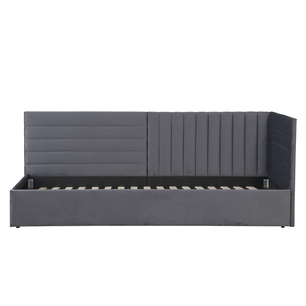 Postel s roštem, 90x200, šedohnědá Taupe Velvet látka, MEVIA