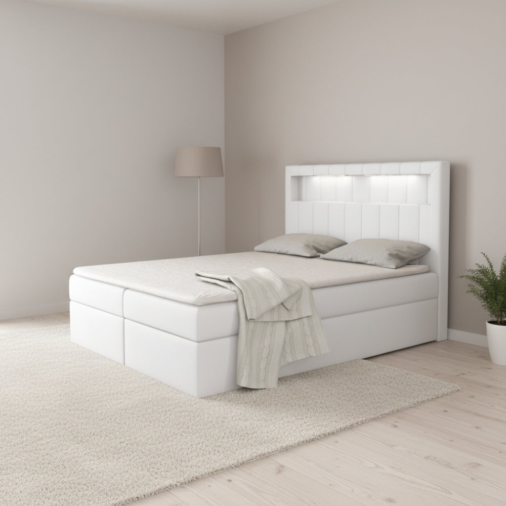 Kombinace všech vrstev zaručuje maximální pohodlí a ničím nerušený spánek. Čalouněná postel dodá vaší ložnici eleganci a luxusní vzhled. Postel je možné objednat v libovolné potahové látce ze vzorníku, takže si snadno vyberete provedení přesně podle svých představ.