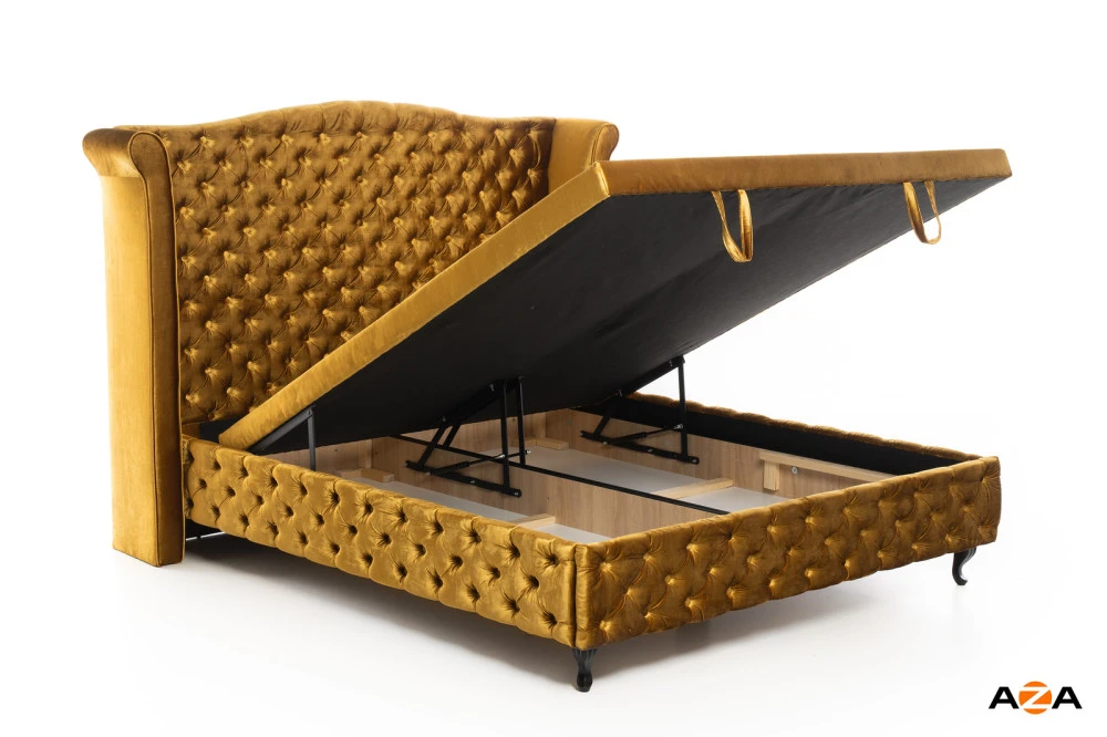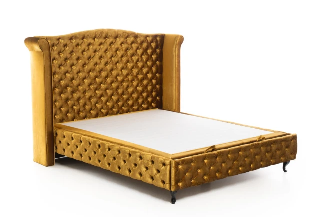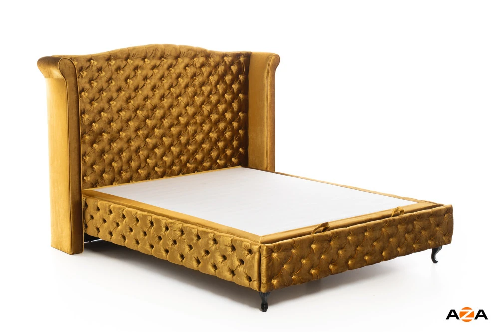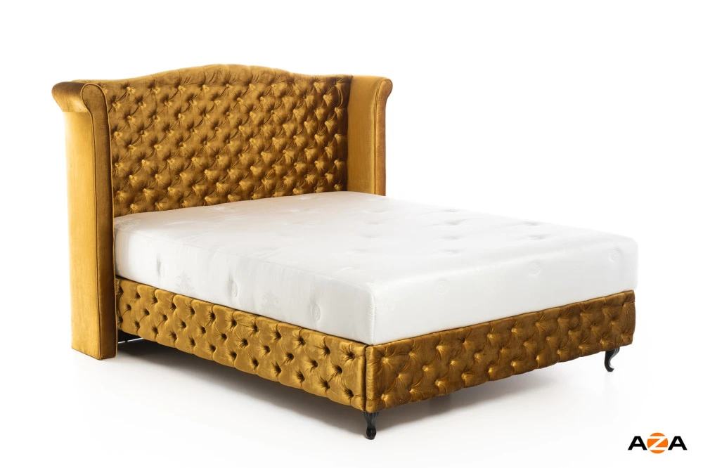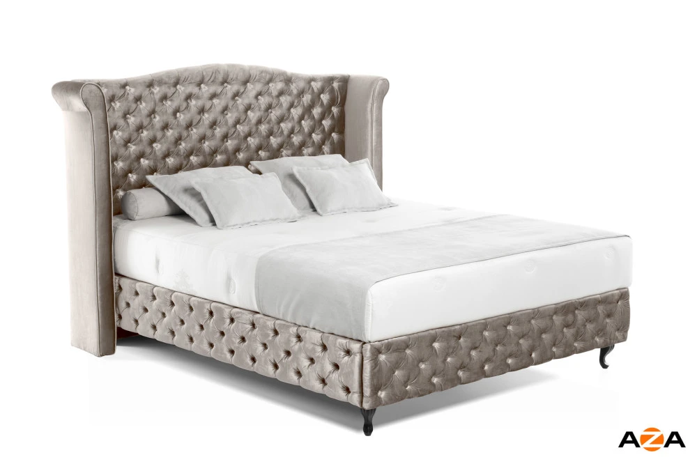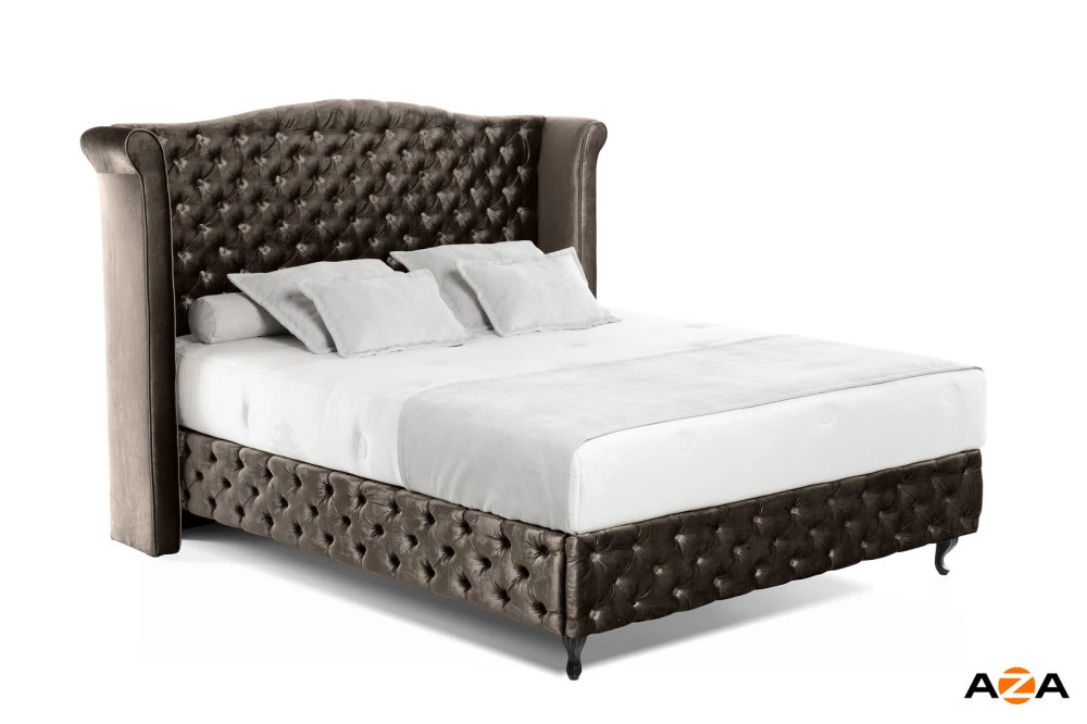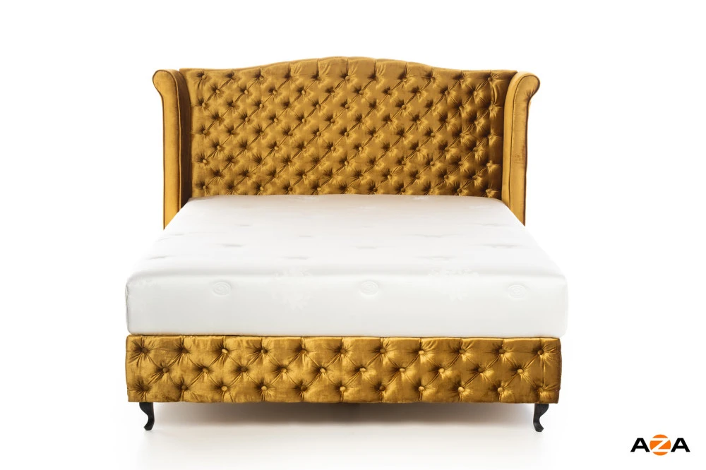 Boxspring postel Kleopatra je mistrovským dílem naší výroby AZA nábytek. Představuje absolutní vrchol naší práce, kde se snoubí ruční zpracování, luxusní design a maximální pohodlí. Na první pohled zaujme majestátním čelem s bočními křídly, bohatým hlubokým prošíváním a precizními detaily, které dělají z Kleopatry opravdový klenot ložnice. Elegantní nožky pak celkový vzhled podtrhují noblesou a lehkostí.