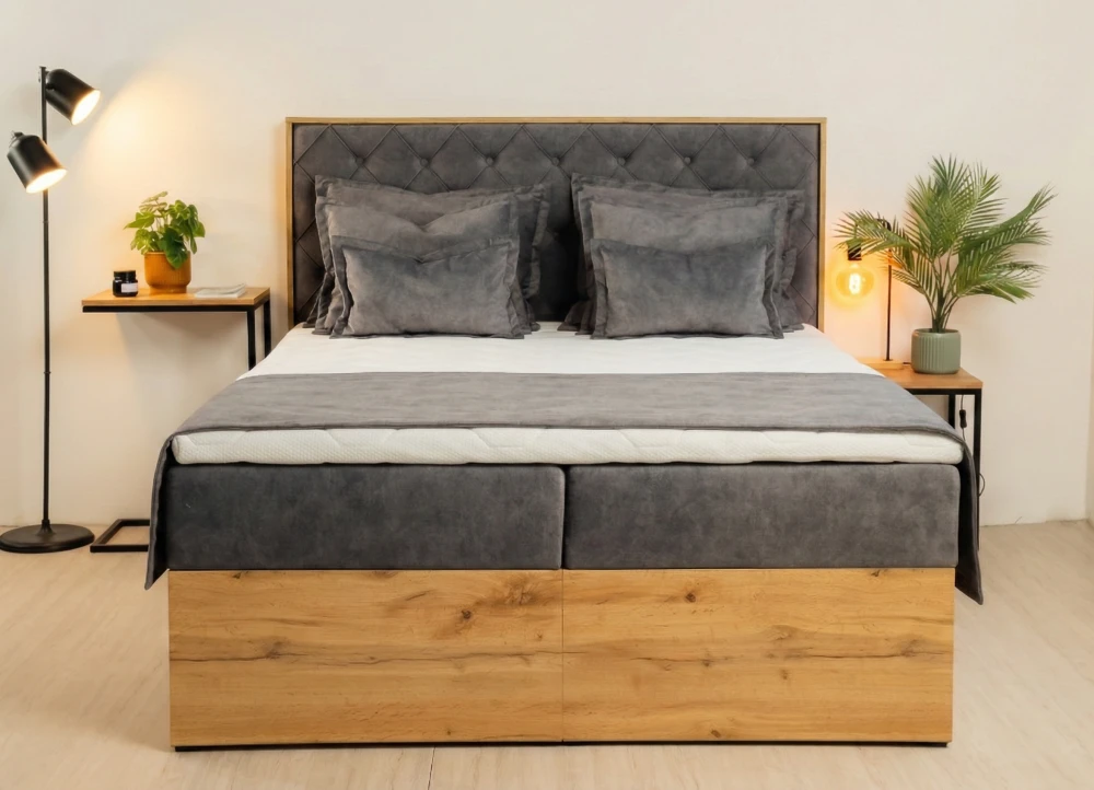 Pro ještě vyšší pohodlí doporučujeme přidat topper – pěnový nebo Visco s paměťovou pěnou. Topper zjemní ložnou plochu, zvýší ergonomii a zajistí lepší podpěru celého těla. Výška ložné plochy je standardně 50 cm, ale můžeš si zvolit i variantu 55 cm nebo 60 cm. Pokud potřebuješ jinou výšku, rádi ji přizpůsobíme individuálně. U postele s topperem počítej s navýšením o přibližně 5 cm.