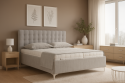 Čalouněná postel Primátor s úložným prostorem zaujme svým čistým designem a precizním čalouněním, které zdobí elegantní geometrické prošívání vysokého čela. Minimalistický vzhled podtrhují úzké kovové nožky, které dodávají posteli lehkost a moderní charakter. Díky nožičkám o výšce 13,5 cm je prostor pod postelí přístupný pro běžný úklid i robotický vysavač. Součástí postele je praktický úložný prostor, který nabízí dostatek místa pro lůžkoviny, sezónní oblečení nebo jiné předměty. Základní provedení postele je vybaveno pevným laťovým roštem s volitelným výklopem – buď od nohou, nebo z boku. Rošt je konstruován tak, aby bez problémů unesl zatížení až 150 kg. Nosná konstrukce postele je navržena s ohledem na dlouhodobou tvarovou stabilitu a zatížení, čímž zajišťuje optimální podporu matrace i komfort uživatele během spánku. Matrace nejsou zahrnuty v ceně postele – nabízíme však možnost výběru z různých typů dle individuálních potřeb. Celková výška ložné plochy se bude odvíjet od typu použité matrace. Díky kombinaci vysoké řemeslné kvality, chytré konstrukce a nadčasového designu je Primátor investicí do komfortu, která obstojí i v náročném provozu.