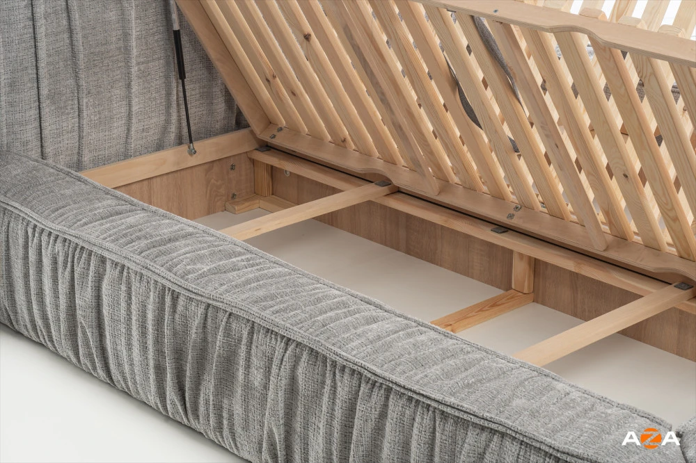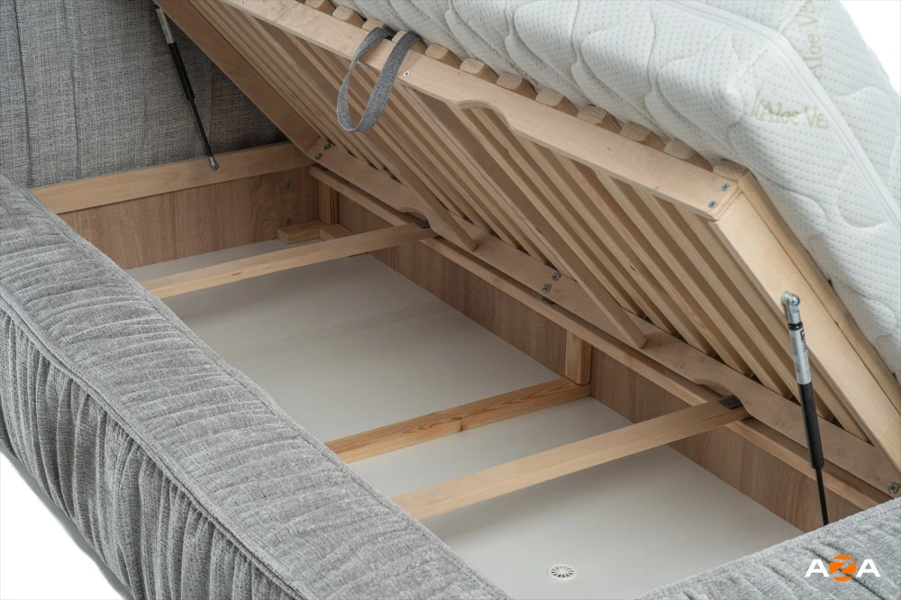 Součástí postele je prostorný úložný box, který skvěle poslouží pro lůžkoviny, sezónní oblečení nebo další věci, které chcete mít vždy po ruce. Pokud dáváte přednost vzdušnější konstrukci, lze postel objednat také bez úložného prostoru.