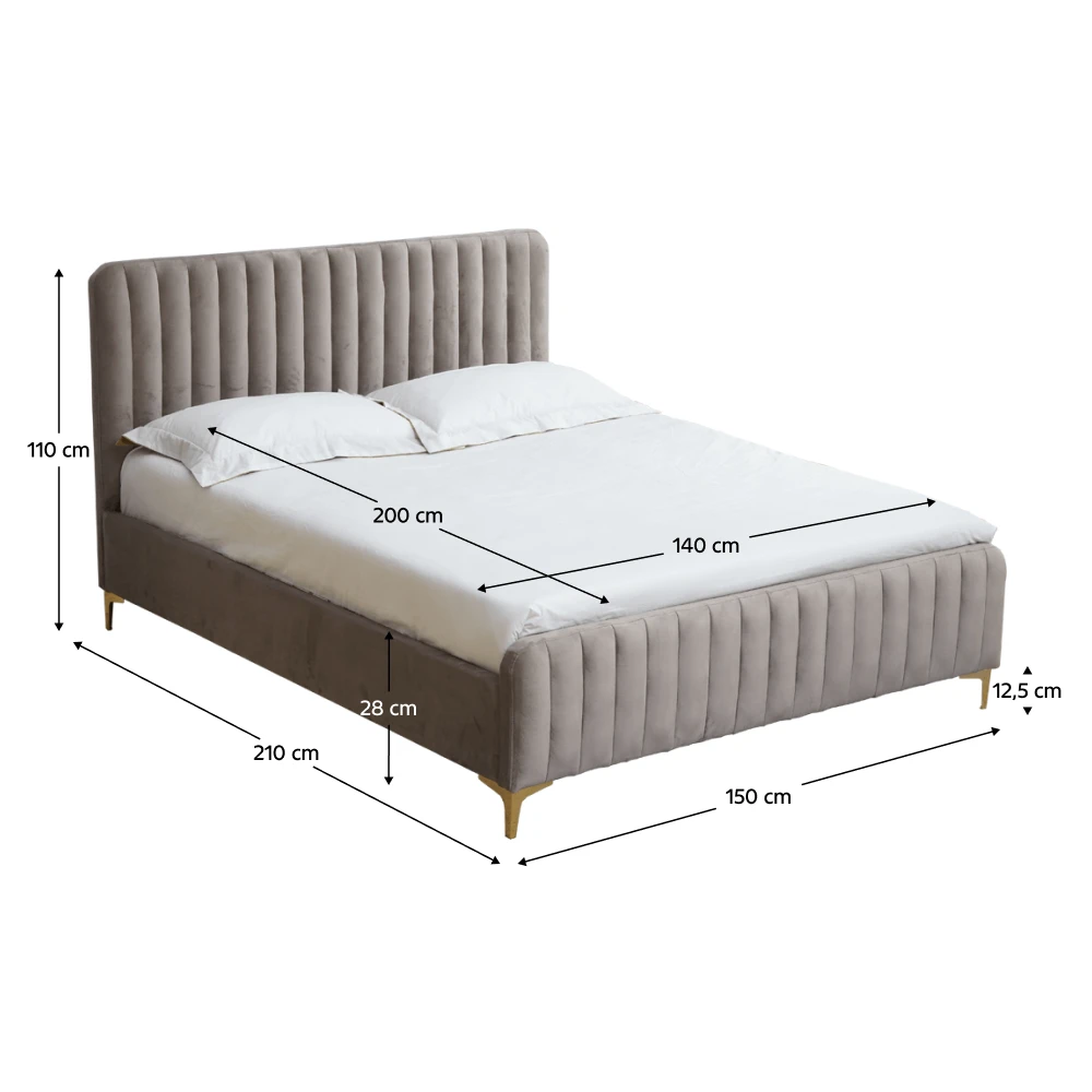 Sametová postel Taupe se zlatými nohami a dekorativním čelem – 140×200 cm