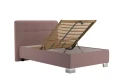 Moderní postel, která se hodí nejen do studentských nebo dětských pokojů, ale také do menších ložnic. Základem lůžka je 28 lamelový rošt s mechanickým polohováním hlavy a nohou (7 poloh hlavy, 1 poloha nohou), s nastavením tuhosti lamel a s popruhem proti přetížení. Rošt se skládá z 28 lamel uložených ve výkyvných kaučukových pouzdrech. Snadnější manipulaci při otevírání úložného prostoru zajišťují plynové písty. Matrace není součástí postele. Součástí postele je úložný prostor, který se otevírá od nohou (pomocí plynových pístů). Tuto postel nabízíme také v dalších rozměrech. Postel je možné zakoupit také s matrací . Zboží je dodáváno v demontu.
