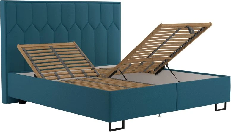 Prostorný úložný prostor se otevírá pomocí plynových pístů od nohou postele, což zajišťuje snadný a plynulý přístup.