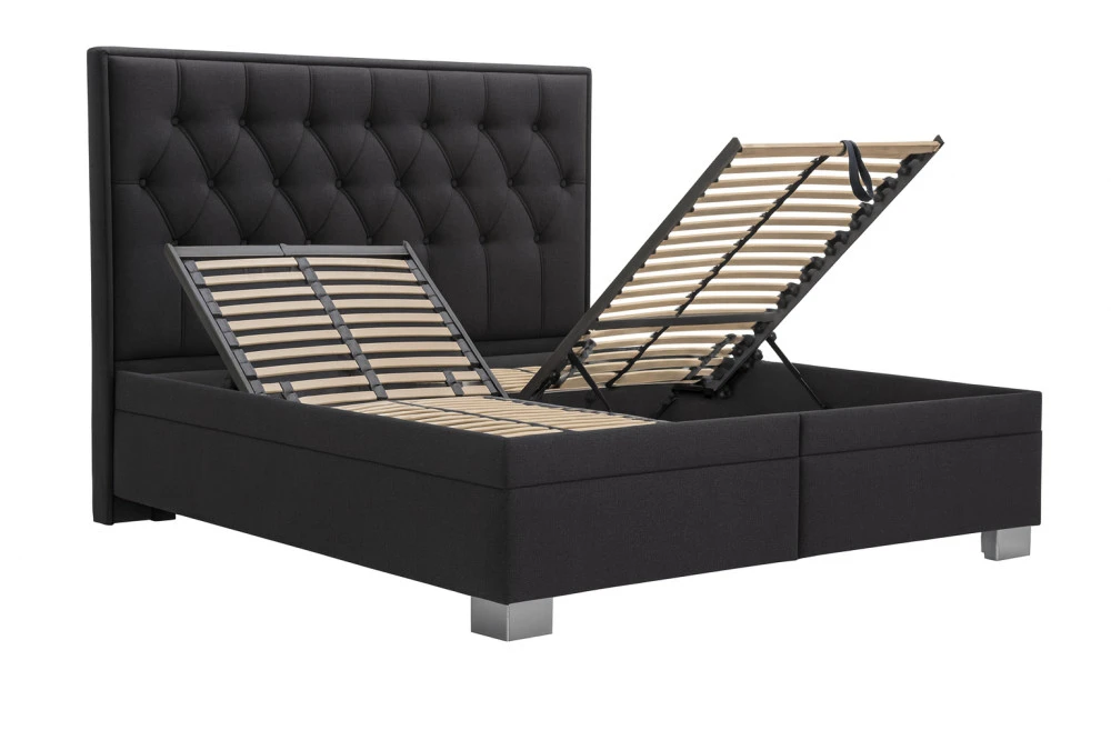 Praktický úložný prostor se otevírá pomocí plynových pístů od nohou postele, což zajišťuje snadnou obsluhu a dostatek prostoru pro lůžkoviny či sezónní oblečení.