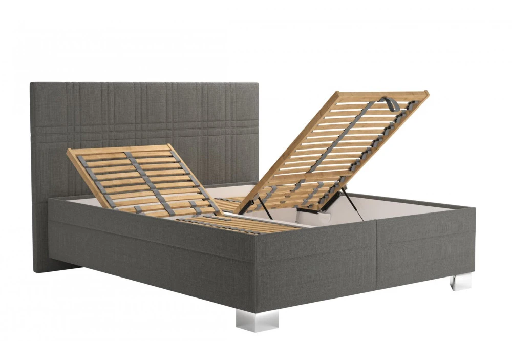 Praktický úložný prostor se otevírá pomocí plynových pístů od nohou postele, což zajišťuje snadný přístup a pohodlnou obsluhu.