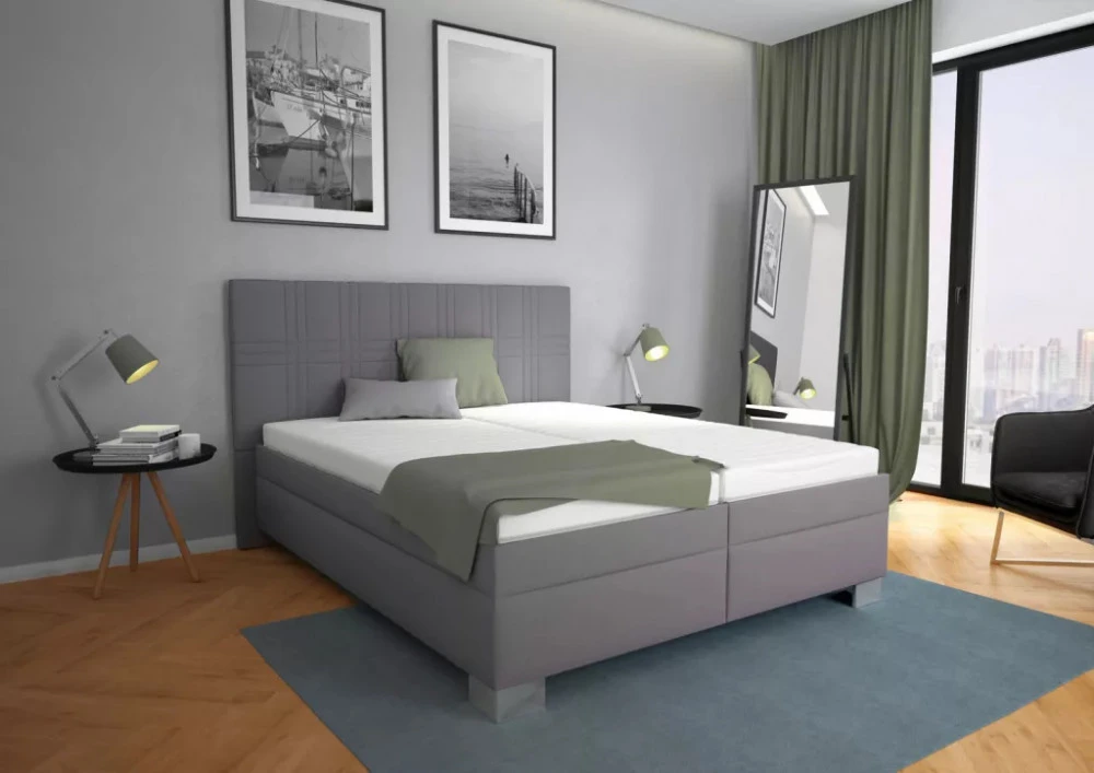 Součástí postele jsou lamelové rošty s plynovými písty a velmi pohodlné matrace o výšce 21 cm.