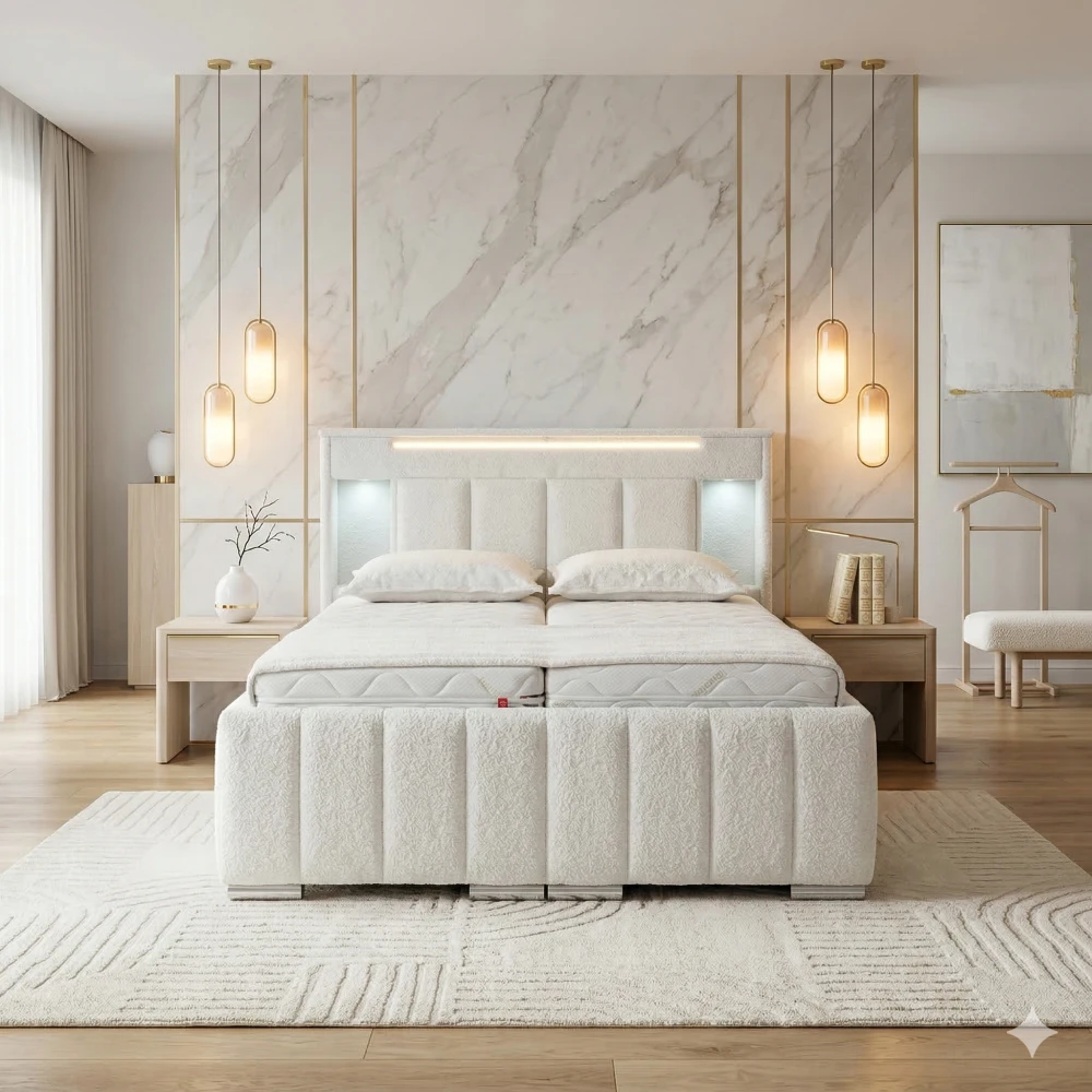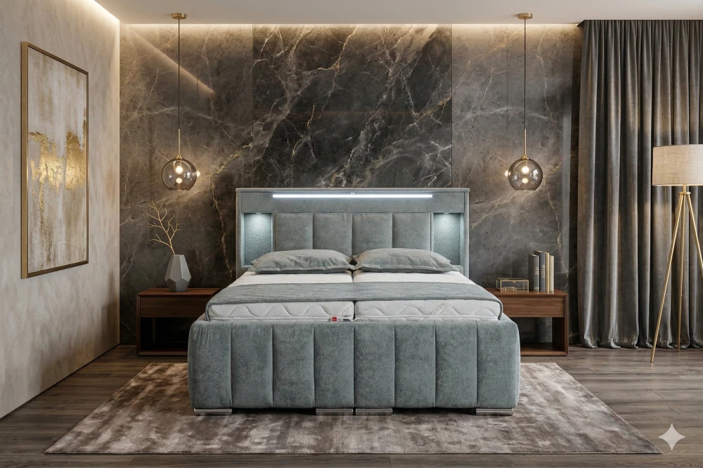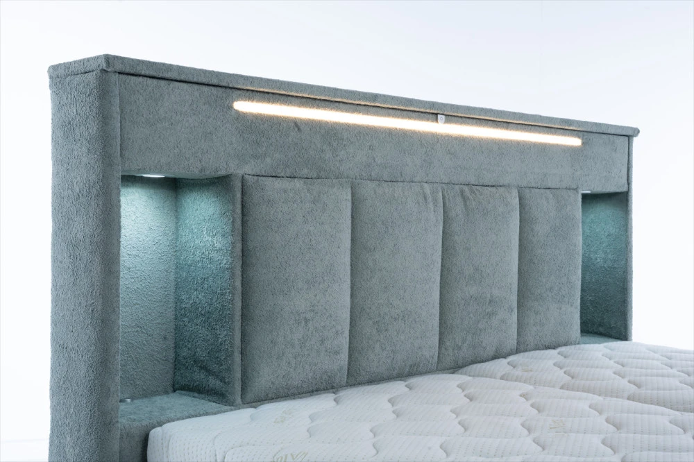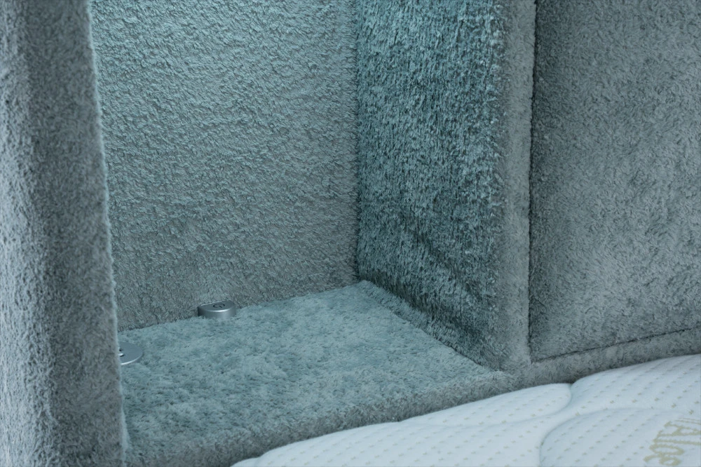 Postel Monty nabízí integrované USB nabíjení v přihrádkách na bocích, což umožňuje pohodlné nabíjení telefonu během noci. Kromě standardního USB portu je zde i USB-C port, takže budete mít vždy svůj telefon připravený na další den, aniž byste museli hledat zásuvky.