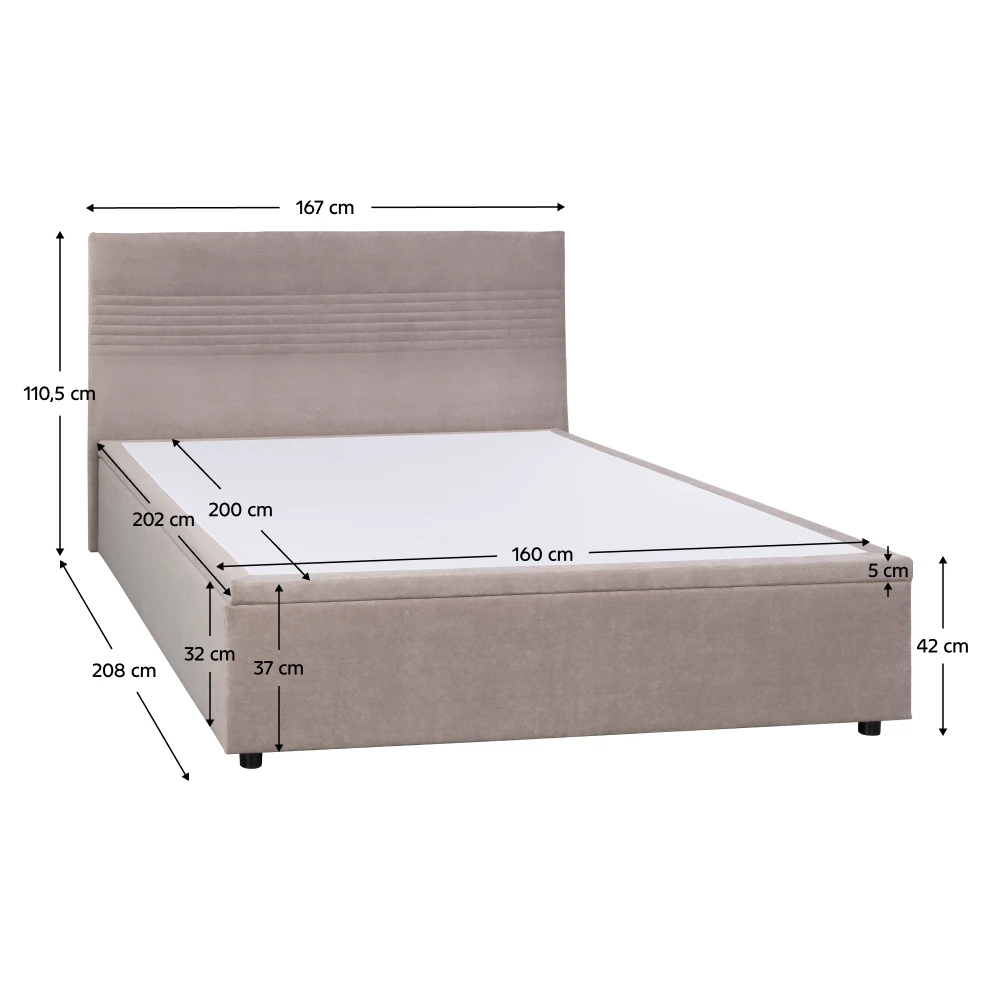 Postel nabízí pohodlnou plochu na spaní 160 × 200 cm a díky úložnému prostoru je skvělou volbou i do menších bytů, kde je potřeba efektivně využít každý centimetr.