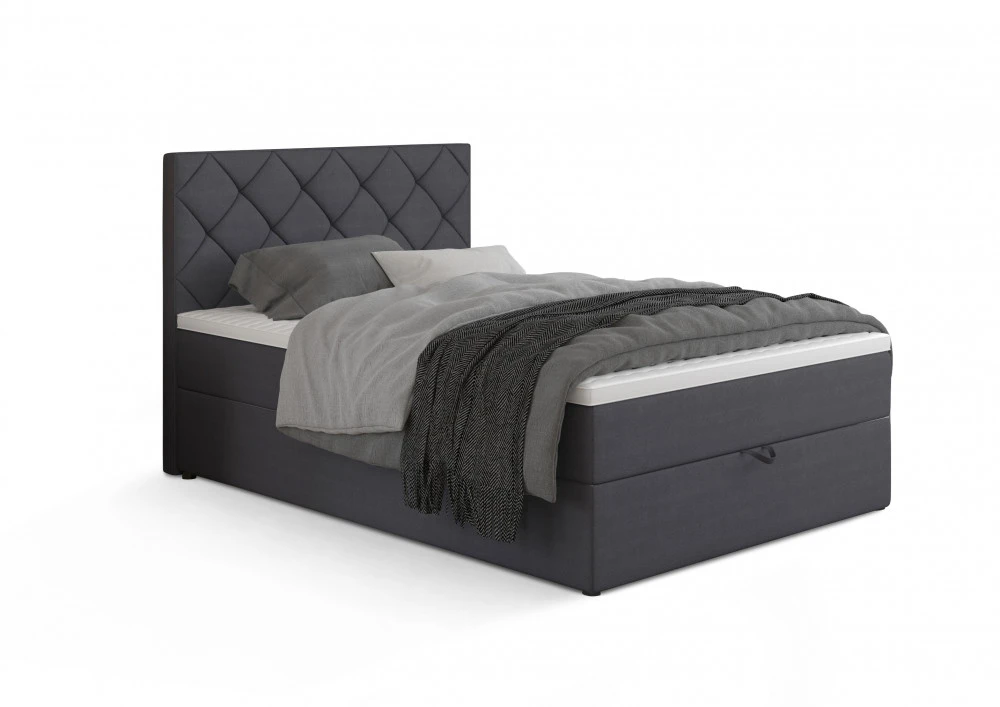 Dopřejte si luxusní spánek, jaký si zasloužíte. Kontinentální postel Boxspring Praga 120x200 cm v elegantním odstínu antracit je dokonalým spojením stylového designu, vysokého komfortu a kvalitního zpracování. Tento model je ideální volbou pro každého, kdo hledá pohodlné a reprezentativní lůžko i do menší ložnice. S výškou lehací plochy 60 cm vám každé ranní vstávání půjde mnohem snáz. Vyvýšená konstrukce zároveň působí honosně a elegantně. Už na první pohled postel zaujme svým robustním čalouněným korpusem a čistými liniemi, které skvěle zapadnou do moderních i klasických interiérů.