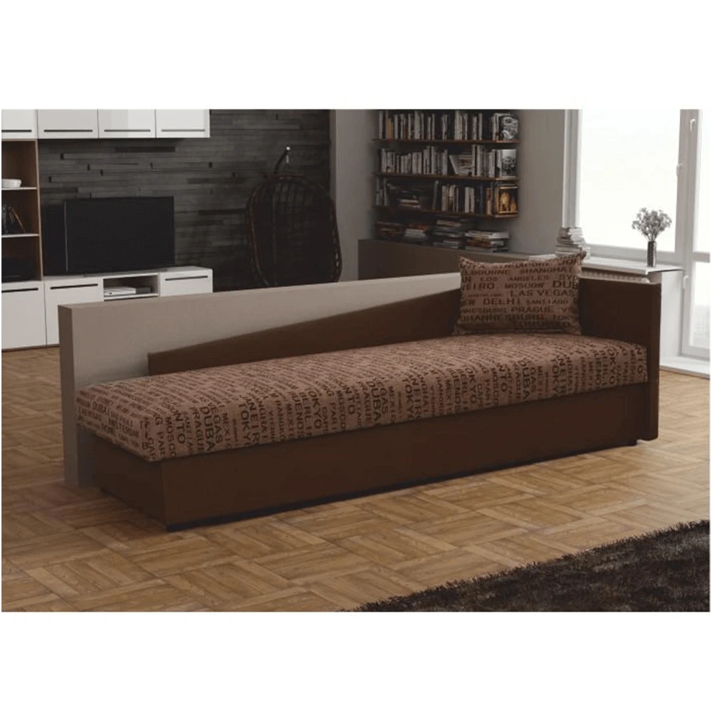 moderní válenda s úložným prostorem, P provedení, kvalitní bonelové sezení, materiál: ekokůže hnědá / látka vzor Vegas 3,