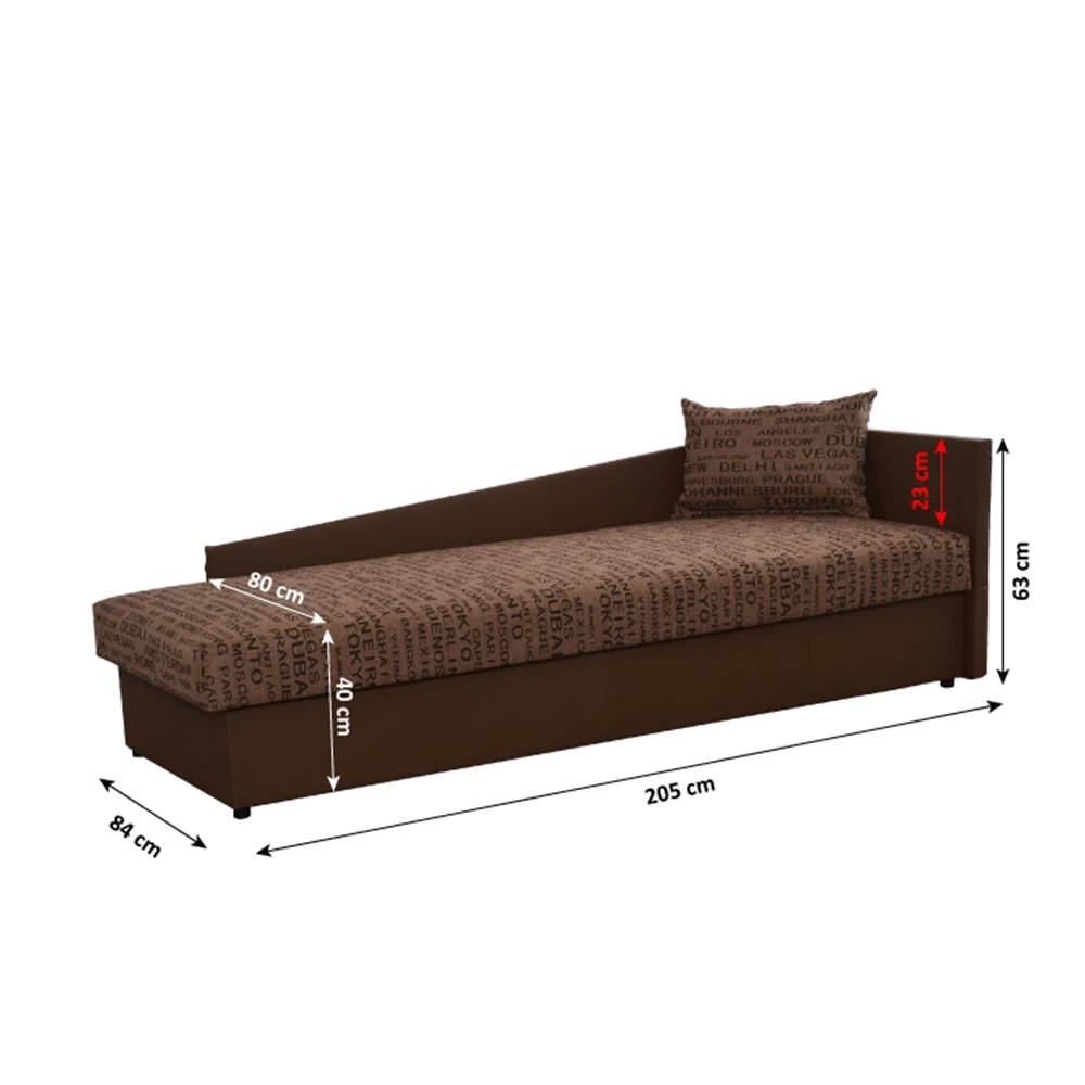 rozměry: ŠxVxH: 205x63x84 cm, plocha na spaní: ŠxD: 80x200 cm, výška x hloubka sezení: 40x80 cm.