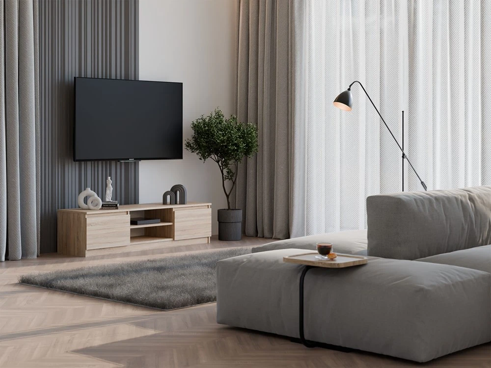 Nadčasový TV stolek Malvína v minimalistickém designu splní očekávání všech, kteří oceňují kombinaci jednoduchosti a elegance. Bezúchytková čela zásuvek zajistí pohodlné používání a dokreslí moderní a útulný charakter vašeho interiéru. Je vyroben ze snadno udržovatelného lamina, hrany jsou zakončené vysoce odolným ABS materiálem.