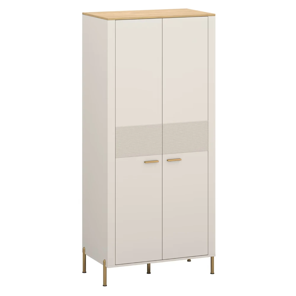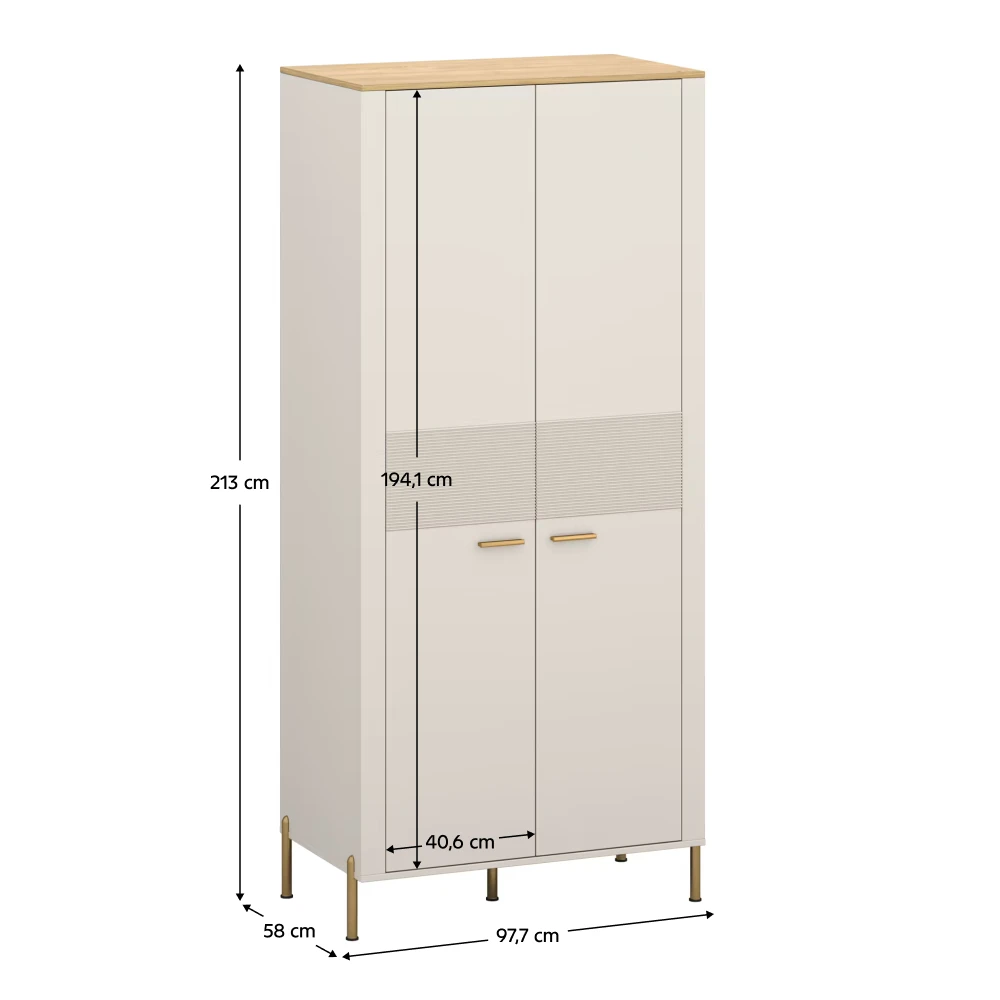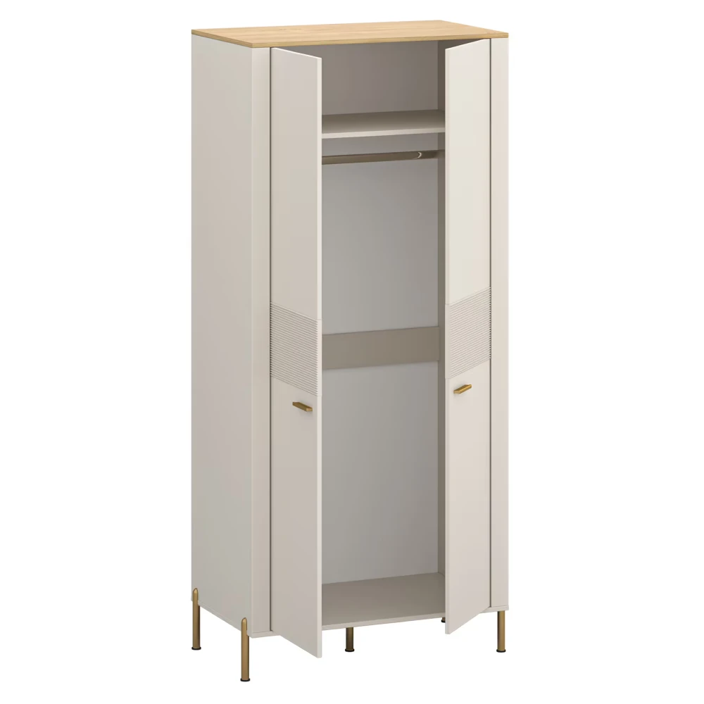 Šatní skříň RUNOL 2D – kompaktní elegance v odstínu kašmír a dub kamenný