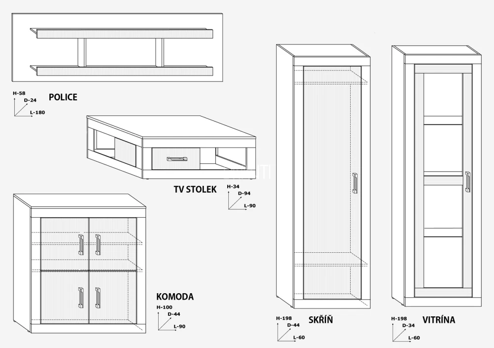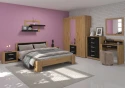 Ložnice je vyrobena z kvalitního 16 a 25 mm silného lamina. Postel dodáváme bez roštu a matrace, lze doobjednat viz související zboží. Šatní skříň je 3-dveřová se 2 zásuvkami. Zrcadlové dveře na skříni opticky zvětšují a projasňují místnost. Zásuvky mají kovové pojezdy. Zrcadlo dodáváme pouze v jednobarevné variantě, nelze jej vybrat v kombinaci. Dodáváme v demontu.Ložnice je naceněná z následujícíh komponentů:- postel Viky 160x200 cm (bez roštu a matrace), rozměry š166/d207/v76 cm, ložná plocha 160x200 cm- 2x noční stolek Viky 14 (2 zásuvky), rozměry š55/h35/v44 cm- závěsná police Viky 13, rozměry š122/h19/h55 cm- komoda Viky 08 (5 zásuvek), rozměry š80/h42/v106 cm- toaletka Viky Viky 15 (zásuvka), rozměry š80/h42/v94 cm- zrcadlo na desce Viky 09, rozměry š80/h2/v74 cm- 3-dveřová šatní skříň Viky 07 (zrcadlové dveře, 2 zásuvky), rozměry š165/h58/v209 cmJednotlivé části ložnice si můžete objednat samostatně.
