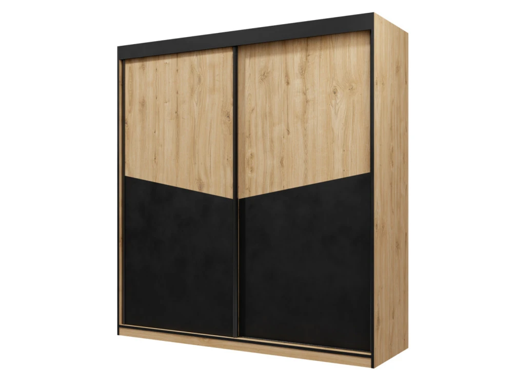 Skříň Asim R1 s posuvnými dveřmi v provedení dubu v kombinaci s černou barvou je vyrobena z kvalitního lamina. Lamino je odolné a jistě oceníte jeho snadnou údržbu. Skříň je dodána v demontu. Součástí balení je montážní návod včetně všech spojovacích prvků.
