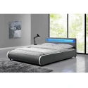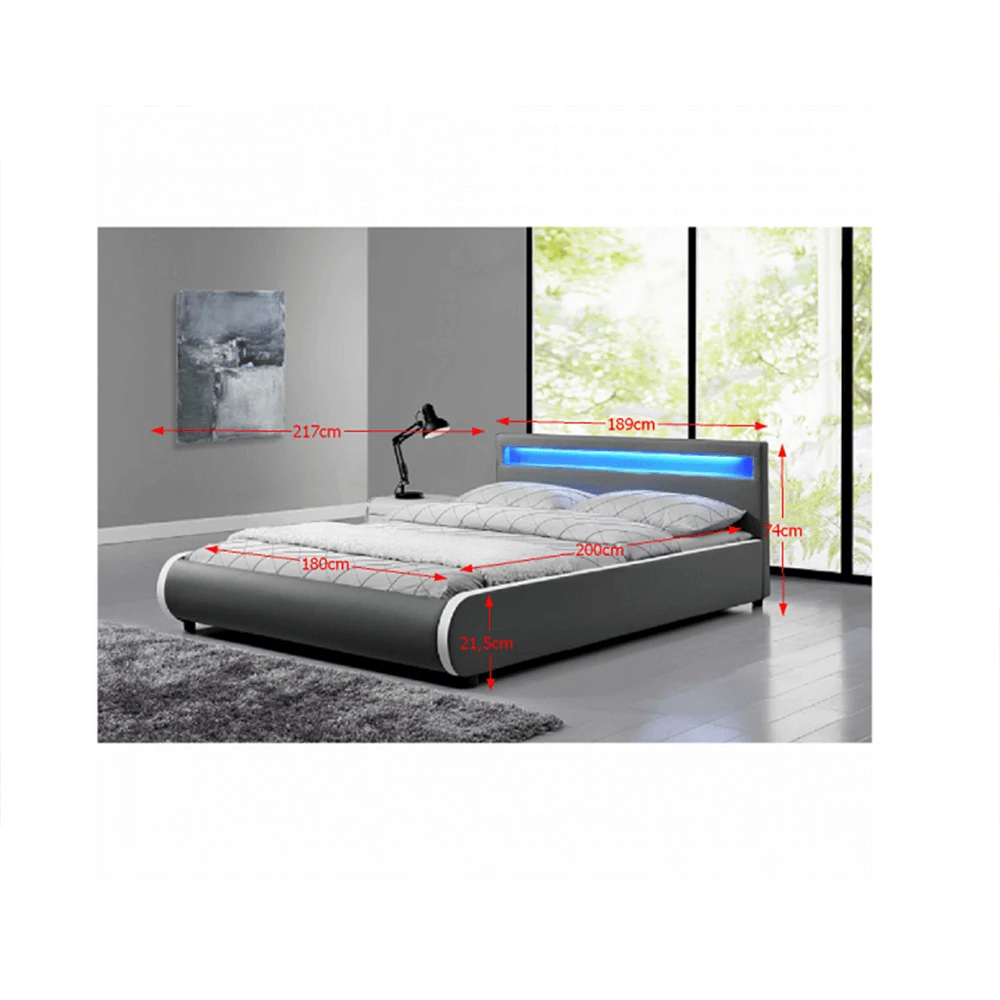 Luxusní šedá postel z ekokůže s RGB LED osvětlením a lamelovým roštem