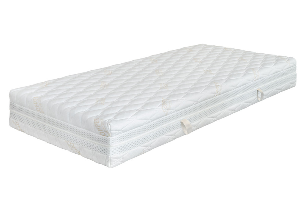 Potah Copper obsahuje měděná vlákna, která přirozeně potlačují růst bakterií až o 99,9 %. Výsledkem je čistší a zdravější prostředí pro spánek, méně alergenů a delší intervaly mezi praním. Měď zároveň přispívá k lepší hygieně a svěžesti matrace po celou dobu používání.