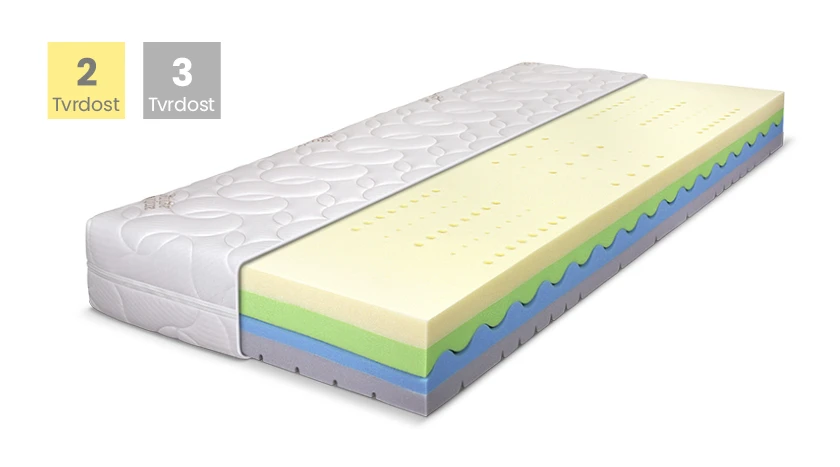 Jádro je tvořeno zámkovým spojem ze dvou kvalitních studených pěn. Jedna strana matrace nabízí vysokou vrstvu VISCO elastické pěny, ve které jsou nejnovější technologií ŘEŠETO vytvořeny otvory a to až do středu základního jádra. Díky propojení vertikálních a horizontálních otvorů je jádro dokonale prodyšné. Druhá strana matrace nabízí roznášecí vrstvu z HR studené pěny s antidekubitním prořezem, kde příční a podélné profilování povrchu jádra lépe kopíruje tvar těla. Matrace je určena pro váhovou kategorii do 130kg. Výška matrace v potahu je cca 19 cm. Potah SILVER ACTIVE.