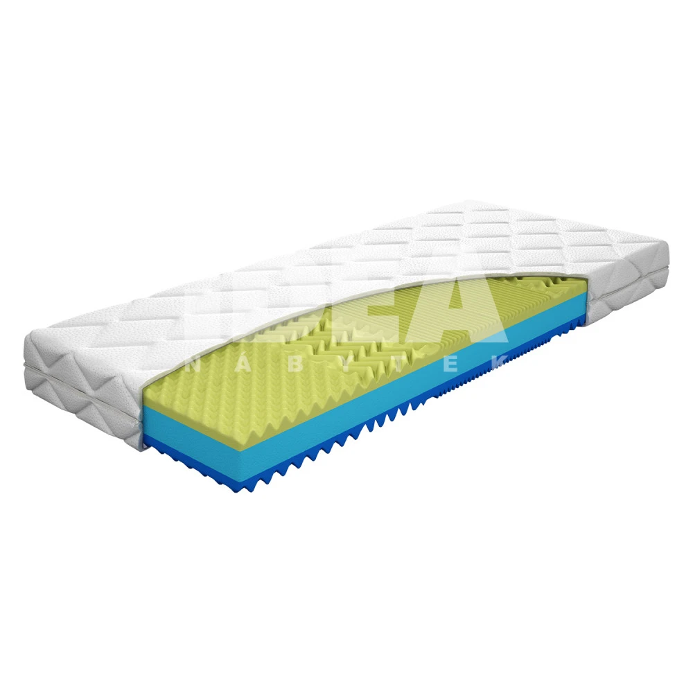 oboustranná sendvičová matrace z viscoelastické paměťové pěny ViscoFoam® a vysoce kvalitních polyuretanových pěn obě strany – 7zónová anatomická profilace, která umožňuje provzdušnění lůžka a napomáhá uvolnění svalstva rozdílná tuhost stran (2 z 5 / 3 z 5) doporučené uložení na pevný i polohovací lamelový rošt potah snímatelný a pratelný do 60 °C doporučená nosnost do 120 kg, výška matrace 19 cm, výška jádra 18 cm