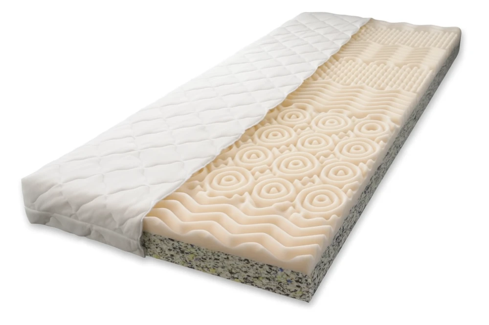Praktická matrace s rozdílnou tuhostí na každé straně nabízí pohodlné a hygienické řešení pro každodenní spánek. Masážní strana s 7 anatomickými zónami z PUR pěny (tvrdost T3) se přizpůsobí tělu a podporuje uvolnění během noci. Druhá, rovná strana z odolné RE pěny s vyšší tuhostí T4 poskytuje stabilní oporu i při větším zatížení.