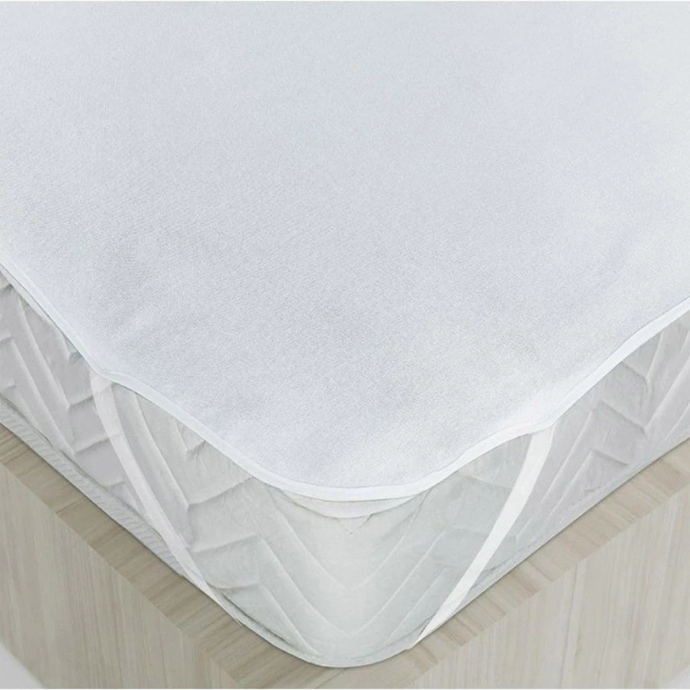 materiál: horní vrstva froté 70% bavlna, 30% polyester, dolní vrstva polyuretan barevné provedení bílá v rozích všité gumy, pratelné do 60 °C