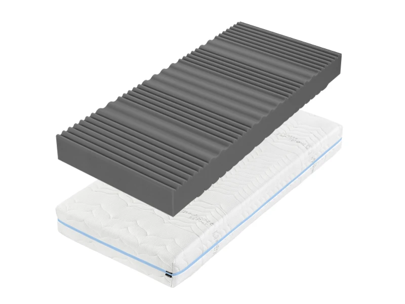 - Jednoduchá a velmi pohodlná konstrukce z odolné a pružné pěny Flexifoam® Monoblok vyšší tuhosti s příčnými kanálky, které napomáhají provzdušnění jádra zajišťují optimální hygienu lůžka. Zóny po obou stranách respektují požadavek na univerzálnost a dlouhou životnost matrace.