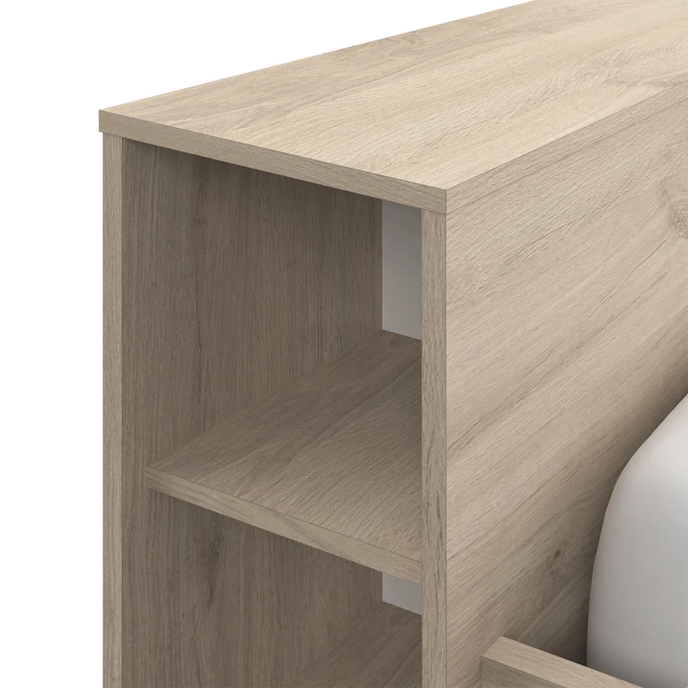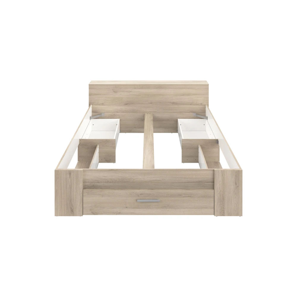 barevné provedení dub Kronberg čelo postele slouží jako knihovna, 3 velké úložné zásuvky, výška sedu cca 51 cm cena bez roštu a matrace, doporučený rozměr matrace 160 × 200 × 16 cm nebo 2 kusy 80 × 200 × 16 cm k posteli je nutné použít samonosný rošt v rámu 160 × 200 cm (7866) k této posteli NELZE použít samonosný rošt v rámu AMERIKA 7155 maximální nosnosti uvedeny v návodu k montáži