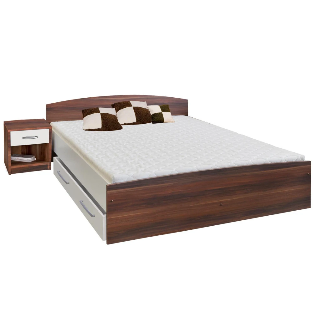 barevné provedení ořech / bílá výška sedu 41 cm, cena bez roštu a matrace doporučený rozměr matrace 160 × 200 cm nebo 2 kusy 80 × 200 cm a rošt R2 noční stolek 60140 není v ceně, k dvoulůžku možno dokoupit úložný prostor 147A barevné varianty: 341A buk, 341B bílá, 50341 dub Sonoma