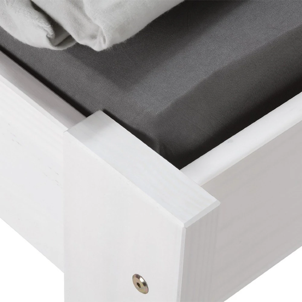 materiál masiv borovice, barevné provedení bílý lak výška sedu 45 cm, cena bez roštu a matrace doporučený rozměr matrace 90 × 200 cm (M2, M5, M9, M12, M14, M24, M26) a rošt R1 vhodný doplněk úložný prostor 8009B