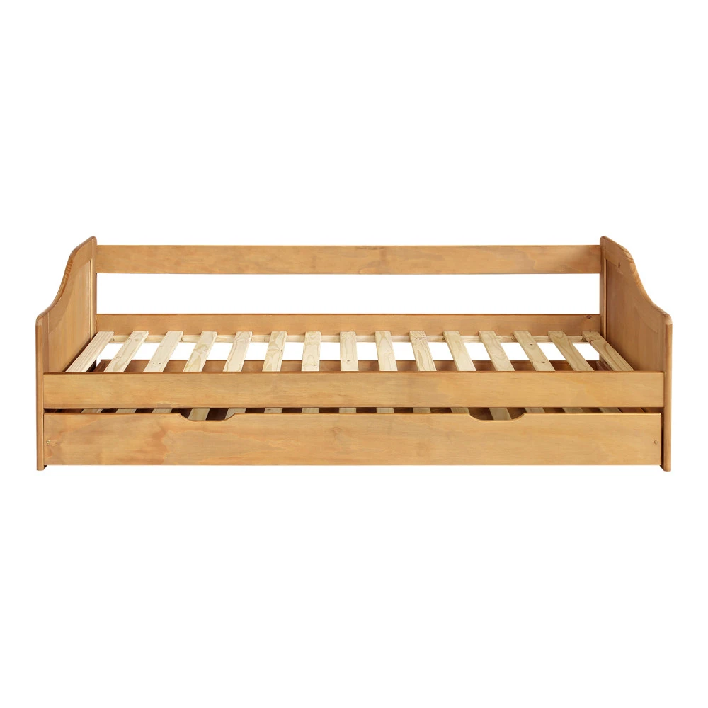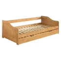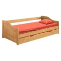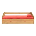 materiál masiv borovice, voskované provedení cena včetně roštu (dřevěný laťkový), matrace není v ceně doporučený rozměr matrace 90 × 200 cm (M2, M5, M9, M12, M14, M24, M26) výsuv možno využít jako úložný prostor nebo jako přistýlku doporučená výška matrace pro přistýlku 10 cm