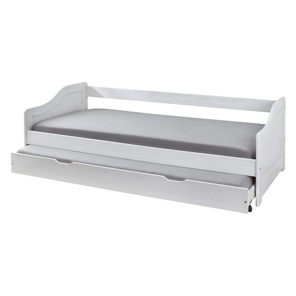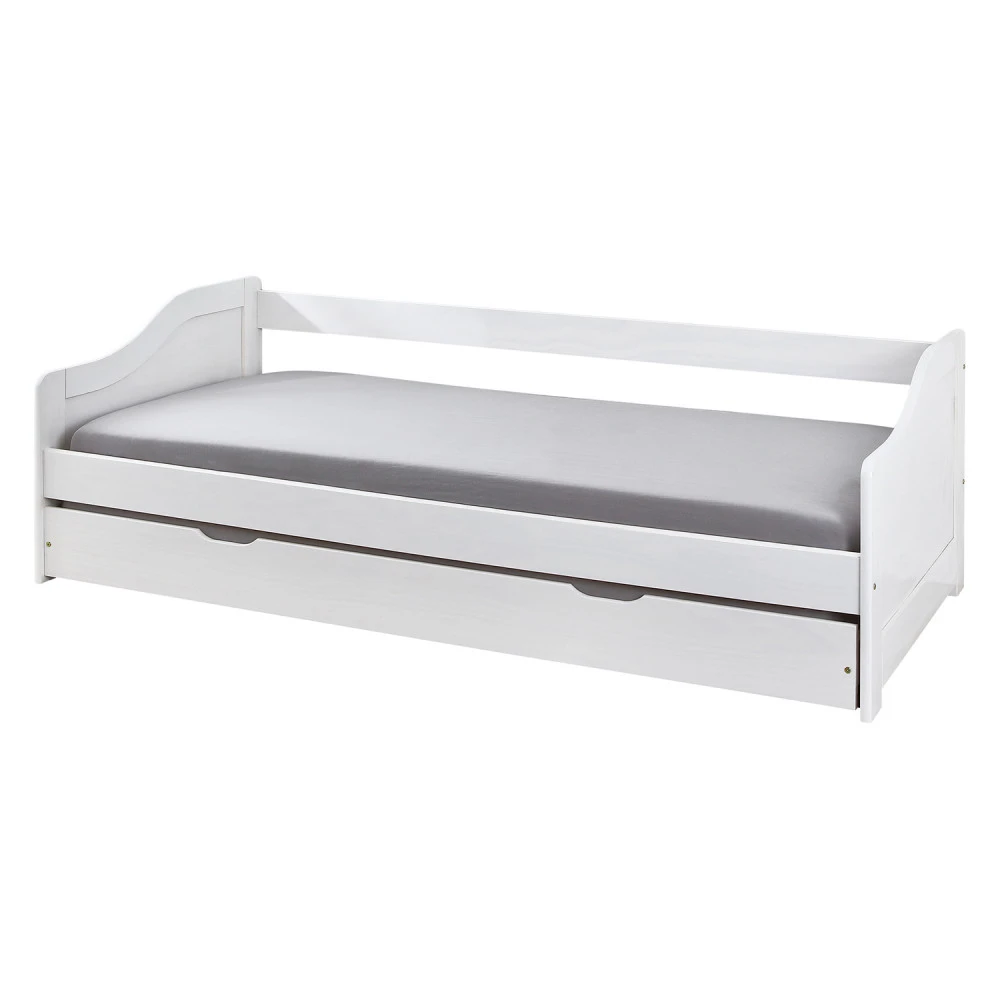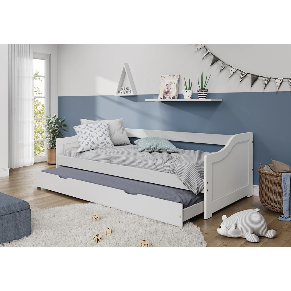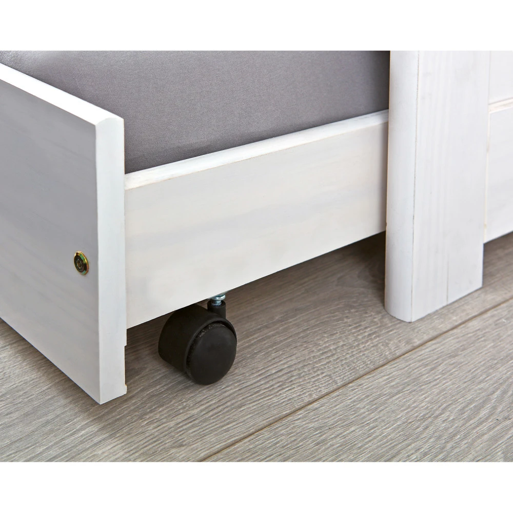 materiál masiv borovice, barevné provedení bílý lak výška sedu postele 37 cm dřevěné laťkové rošty jsou v ceně, matrace nejsou v ceně výsuv možno využít jako úložný prostor nebo jako přistýlku doporučená výška matrace pro přistýlku 10 cm doporučený rozměr matrací 90 × 200 cm Leonie ID20900215