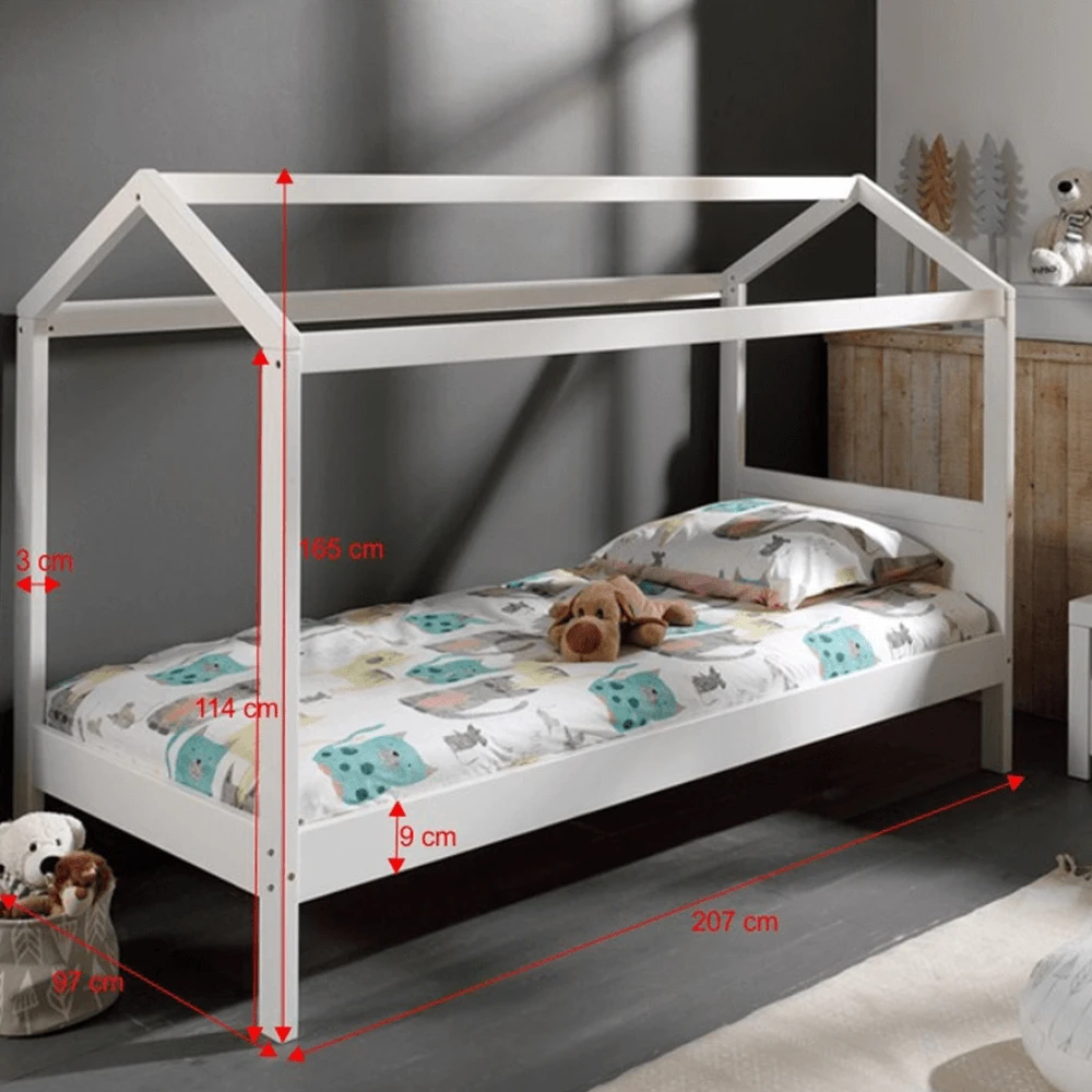 Postel je vyrobena z kombinace borovicového dřeva, MDF a překližky, což zaručuje pevnost, stabilitu a dlouhou životnost. Nízká konstrukce umožňuje dítěti snadno vlézt i vylézt z postele bez pomoci dospělých, čímž podporuje jeho nezávislost a sebedůvěru.