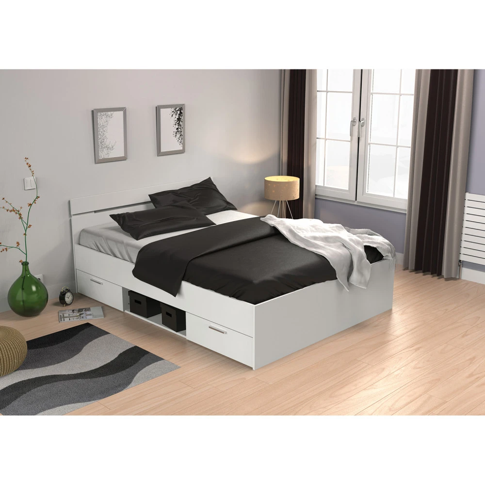 barevné provedení perleťově bílá 2 úložné zásuvky s kovovými pojezdy, rozměr zásuvky (š/v/h) 56 × 11 × 33 cm rozměr niky (š/v/h) 70 × 20 × 36 cm, zásuvky a nika jsou v ceně matrace a rošt nejsou v ceně, doporučený rozměr matrace 140 × 200 cm k posteli je nutno použít samonosný rošt v rámu 140 × 200 cm (7160 nebo 7867) doporučená maximální nosnost 2 × 100 kg